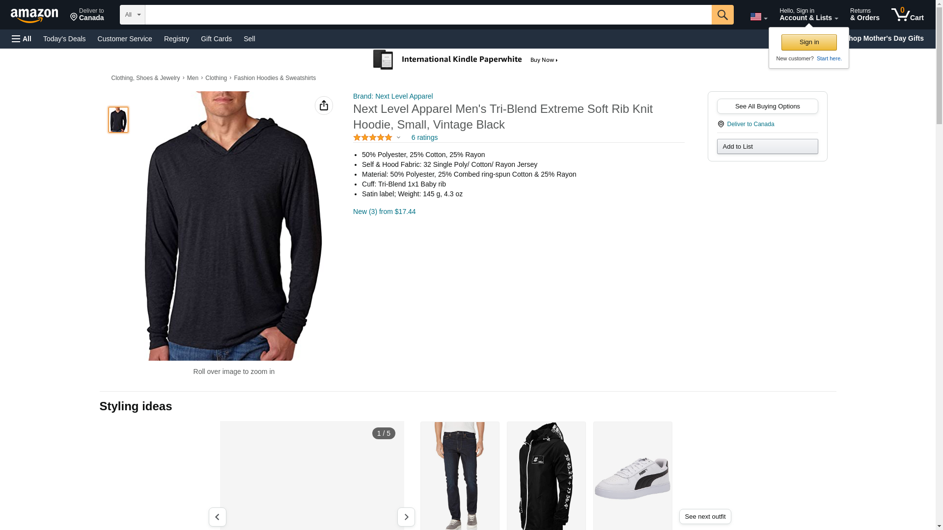 Next Level Apparel Tri-Blend Extreme Soft Rib Knit Hoodie, VINTAGE BLACK, Small