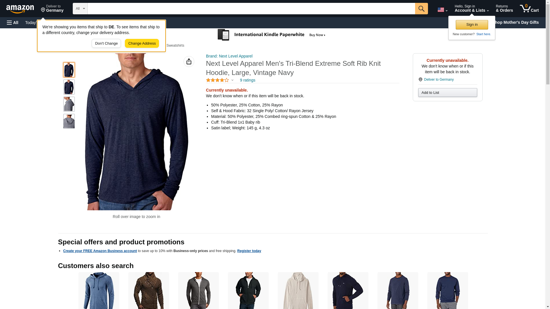 Next Level Apparel Men's Tri-Blend Extreme Soft Rib Knit Hoodie, Medium, Vintage Navy