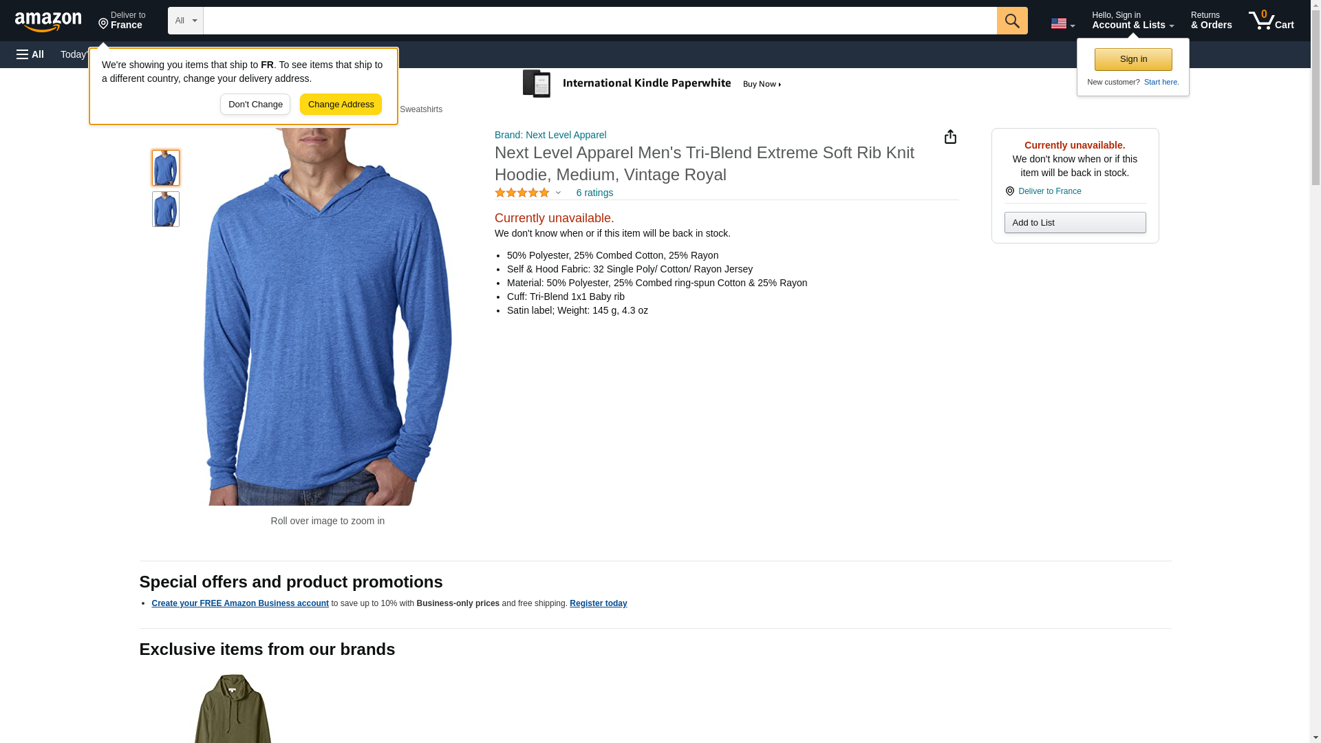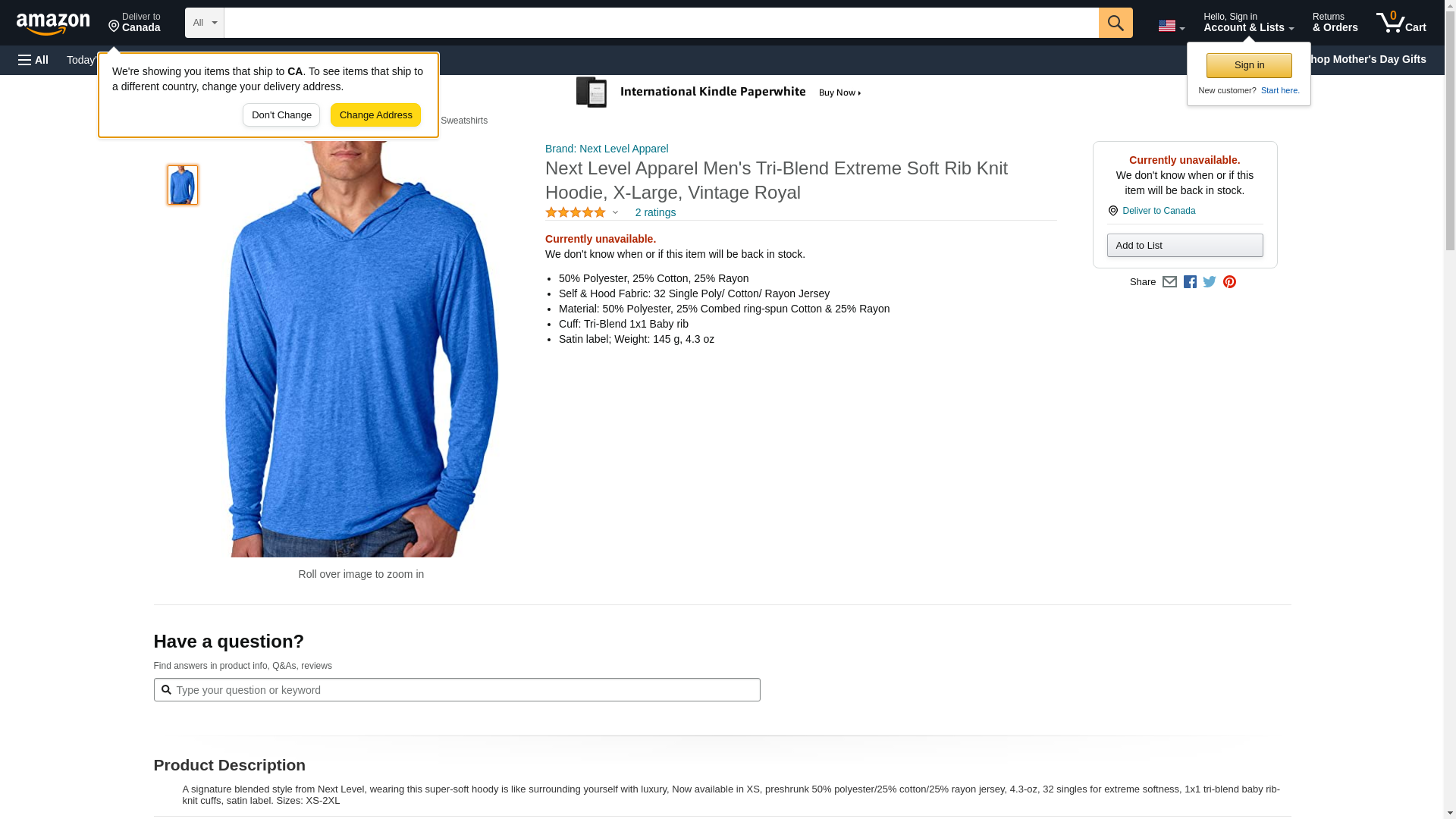 Next Level Apparel Tri-Blend Extreme Soft Hoodie, Vintage Royal, XX-Large