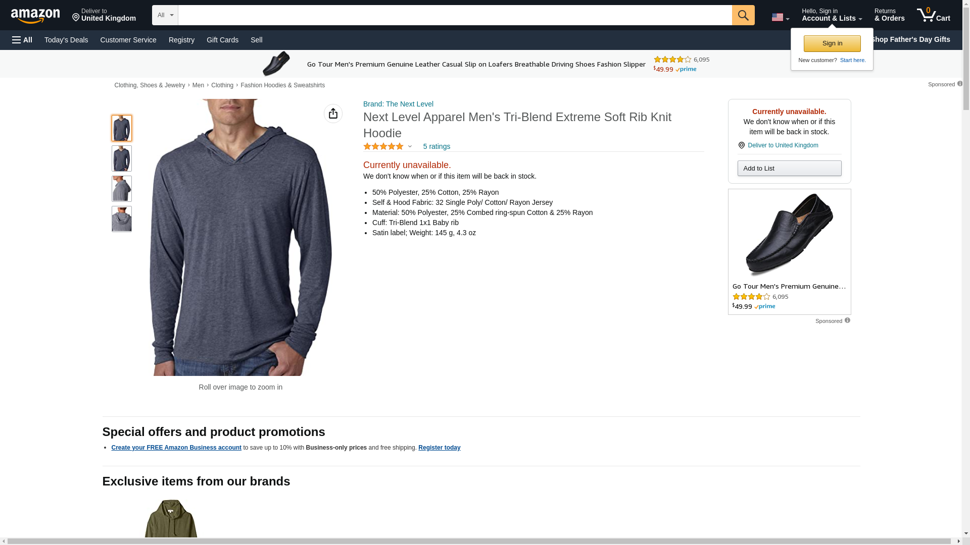 NEXT LEVEL APPAREL Men's Tri-Blend Rib Knit Hoodie
