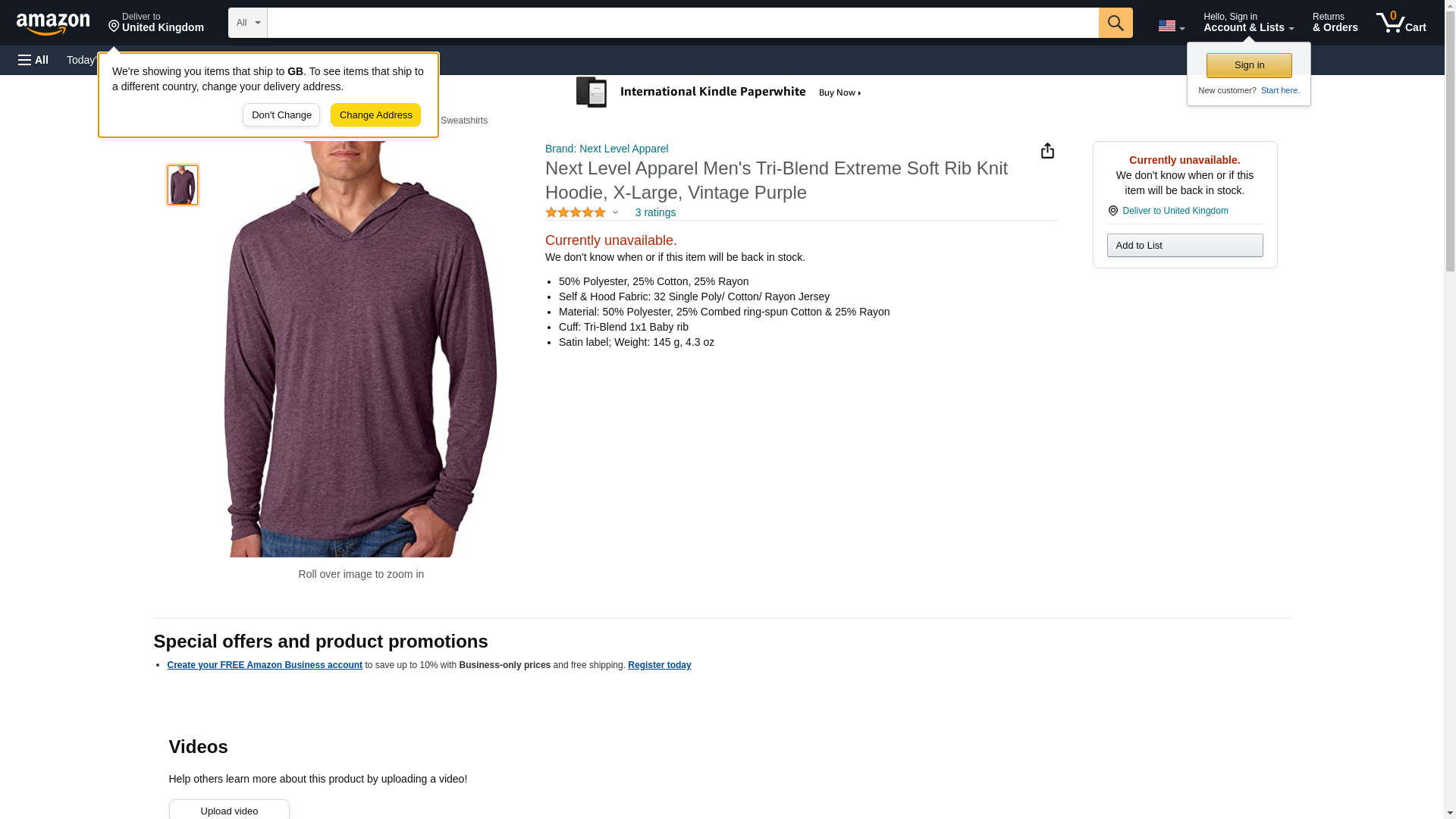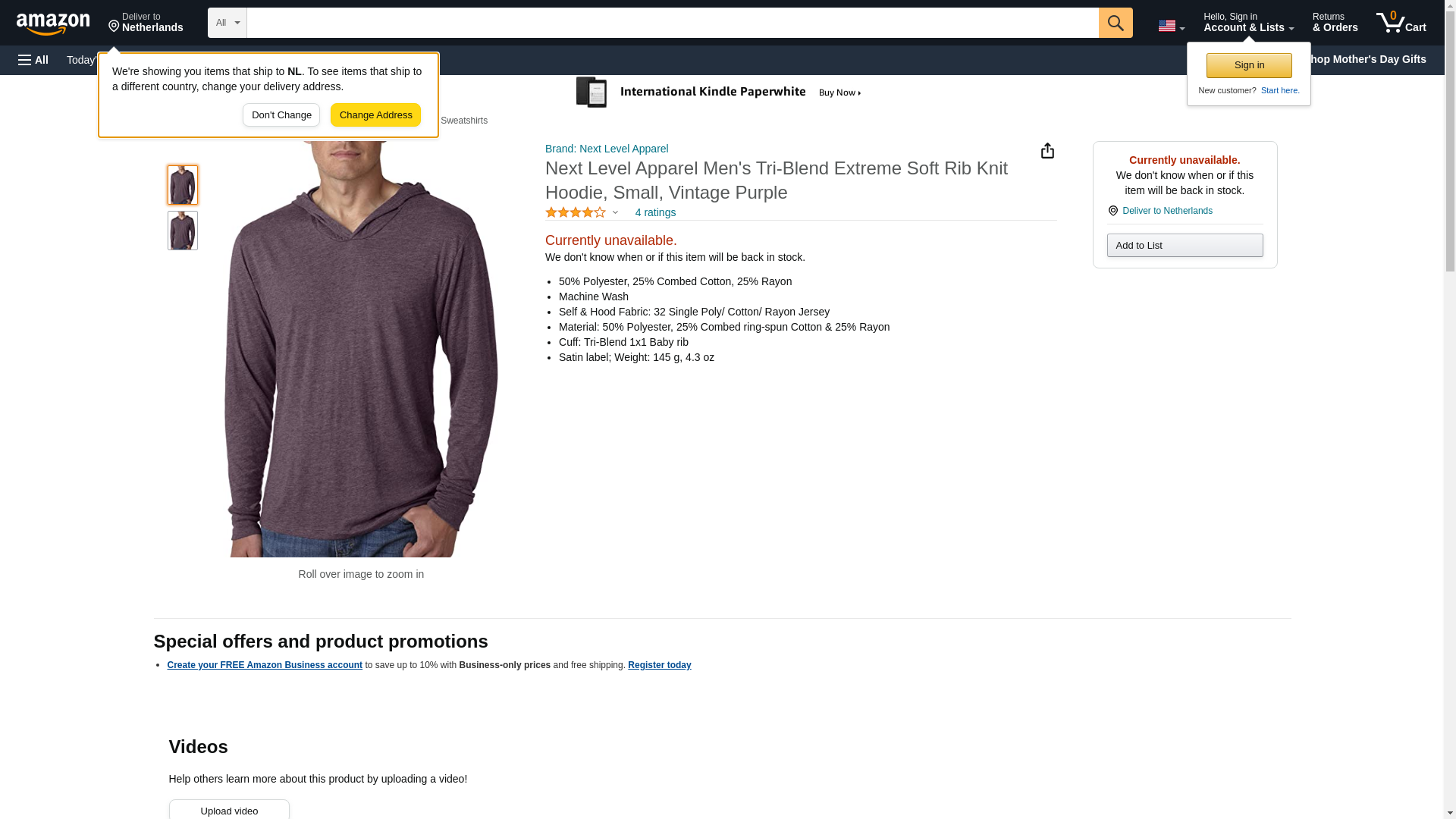 Next Level Apparel Men's Tri-Blend Extreme Soft Rib Knit Hoodie, X-Small, Vintage Purple