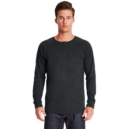 Next Level NL MENS TRI BLND LS HENLEY, PREMIUM HEATHER, 2XL