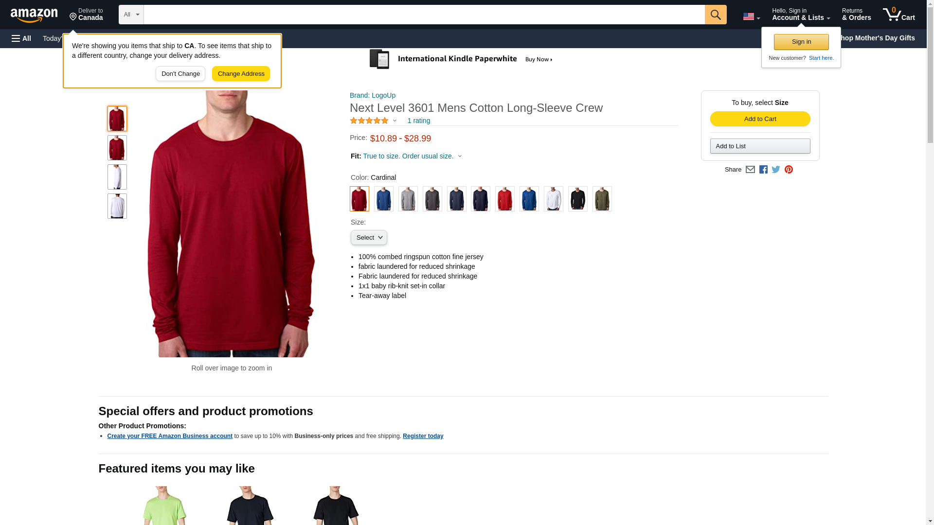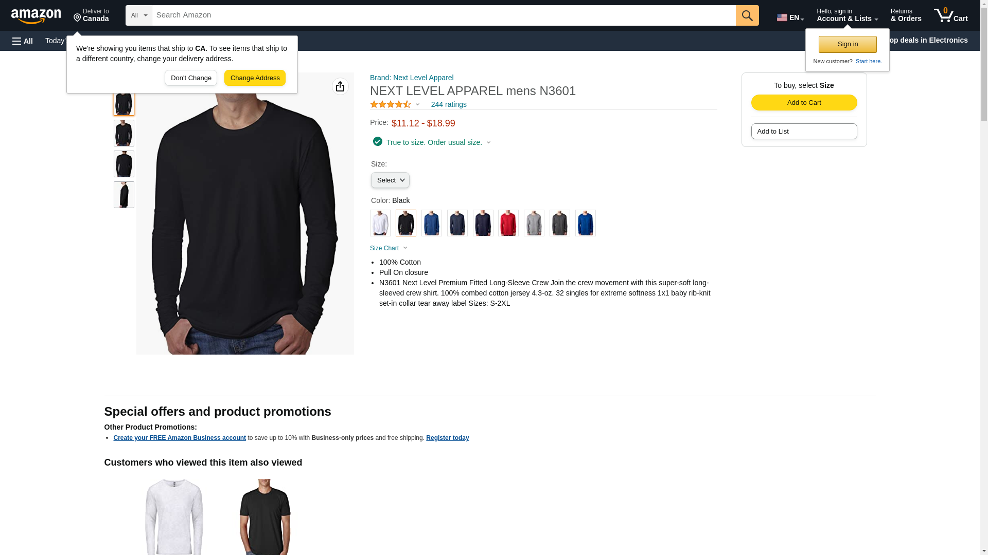 | Feature | "Next Level N3601 NL Men's L/S Shirt" |