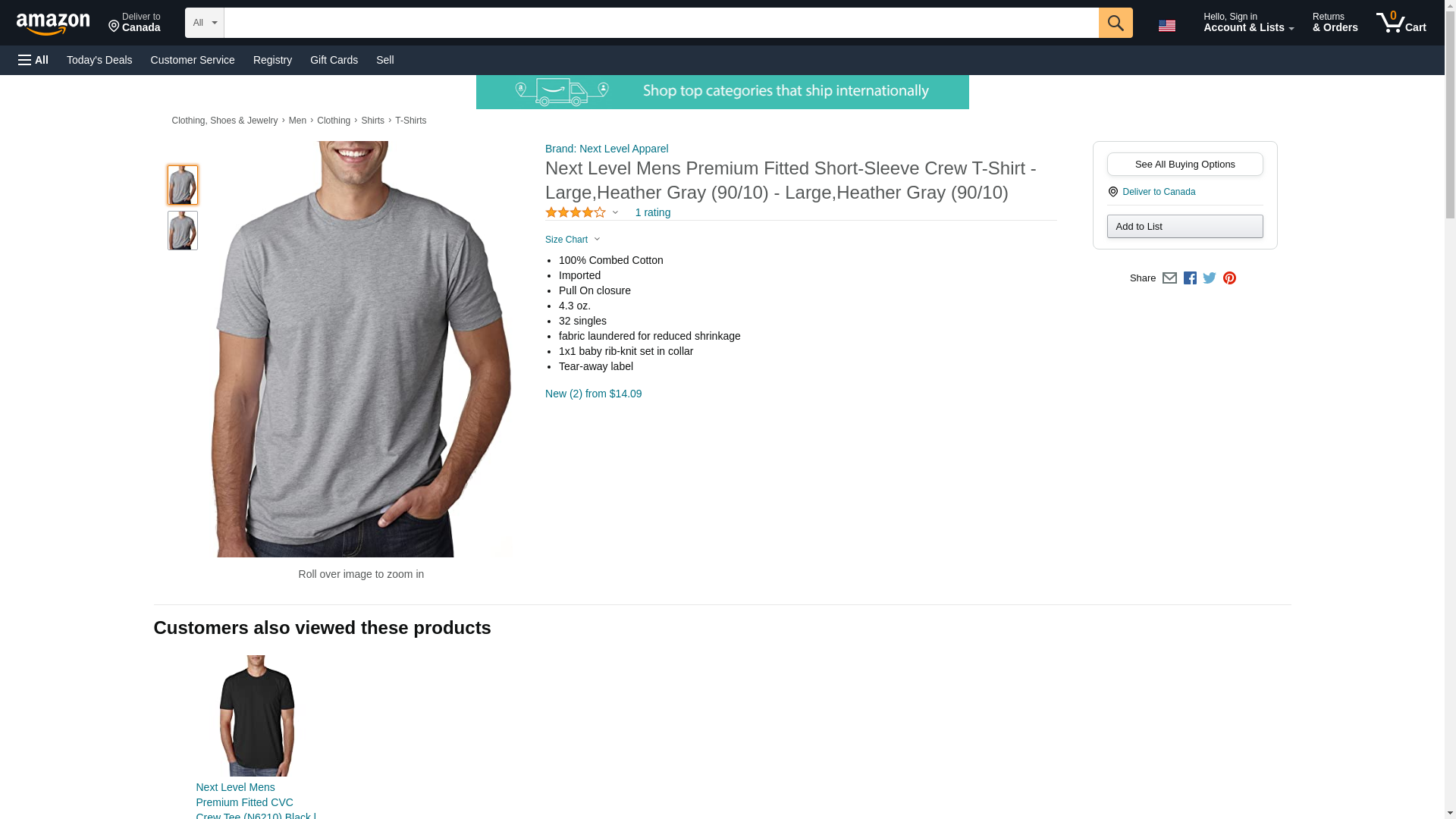 Next Level Mens Premium Fitted Short-Sleeve Crew T-Shirt - Large,Heather Gray (90/10) - Large,Heather Gray (90/10)