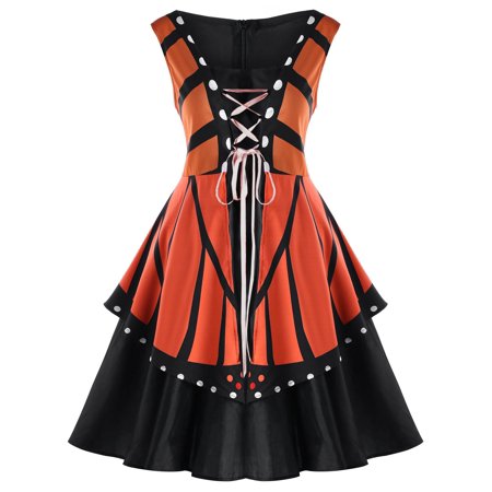 <ul> <li>Get a fun and beautiful look in this dress; elegant dress rendered in lively butterfly print and featured in a butterfly shape silhouette with a lace-up design in the front</li> <li>The dress also features sleeveless cut, high waist and a-line silhouette; layered look with added volume for an ultra cool design</li> <li>The dress provides you with a flattering fit you'll love; its fabric keeps you comfortable in practically any setting</li> <li>Its highly versatile design makes it great even for formal settings, like weddings, anniversaries, and dinner parties</li> <li>Makes a perfect gift for the special lady in your life; she will love how she looks in this eye-catching dress</li> </ul>