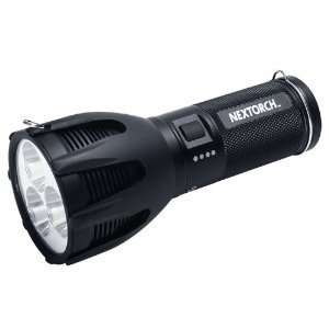 NexTorch - NexTorch Saint Torch 3 - Turbo Power Search Light. Model: NXST3. 7 overall. Textured black 6061-T6 aluminum housing. 3 CREE XM-L U2 LEDs. Six pre-set modes: momentary on and turbo with 2600 lumen output and 1 hour 40 minute burntime, high with 1300 lumen output and 12 hour burntime, strobe, and S.O.S. Light can also produce a wide beam for maximum close-range coverage and up to 460 ft. beam distance for searching capacity. Includes 10400mAh high capacity re-chargeable battery pack. Black nylon zip-up carrying case. Ideal for scouting, extended searching, and patrol and rescue. MAP is $251.56.