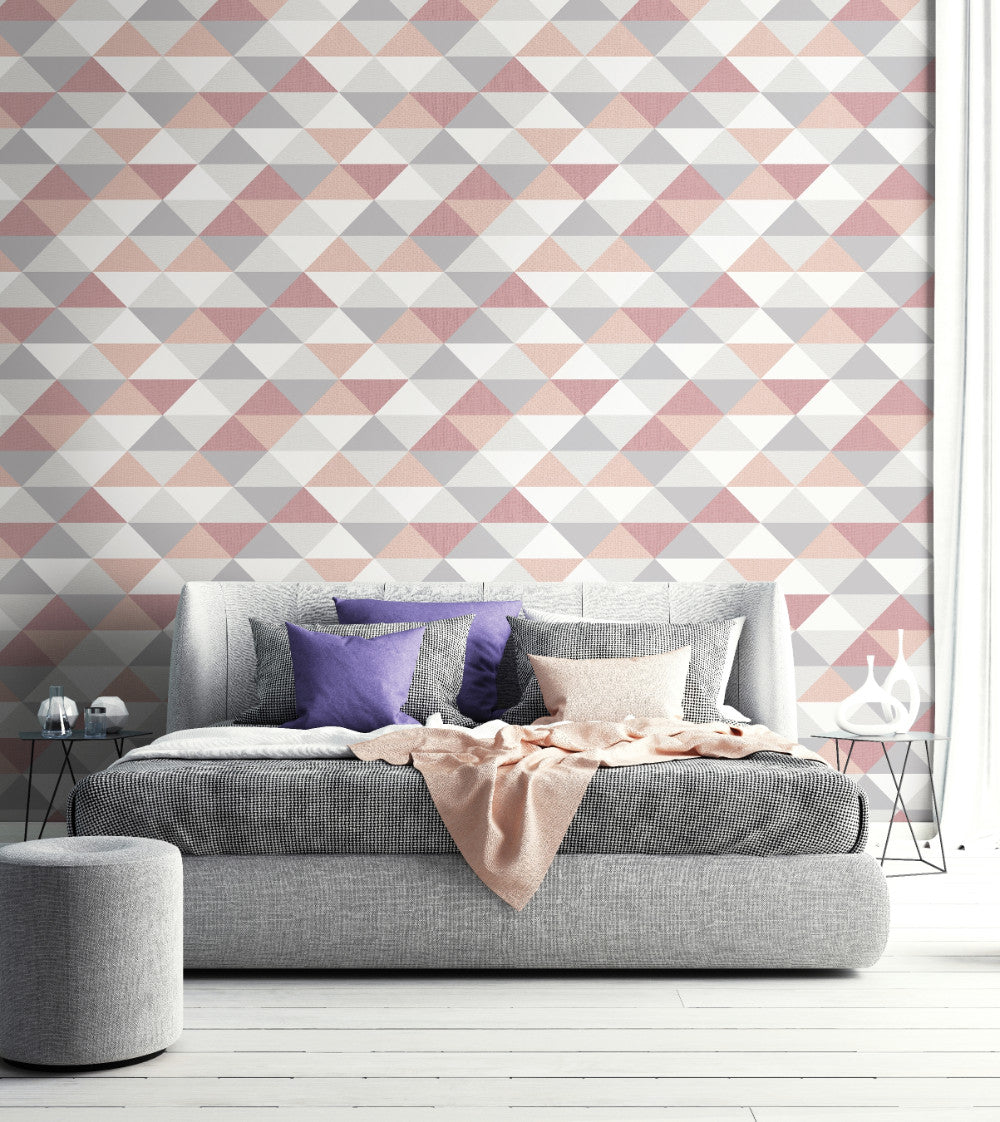 NextWall Mod Triangles Peel and Stick Wallpaper. (Pink & Gray)