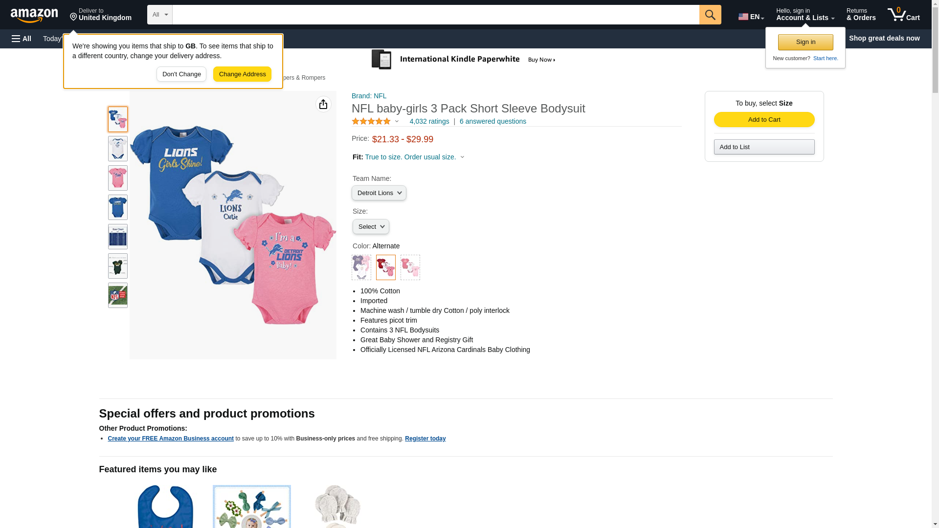 NFL Detroit Lions Baby-Girls 3-Pack Short Sleeve Bodysuits, Fuchsia, 6-12 Months