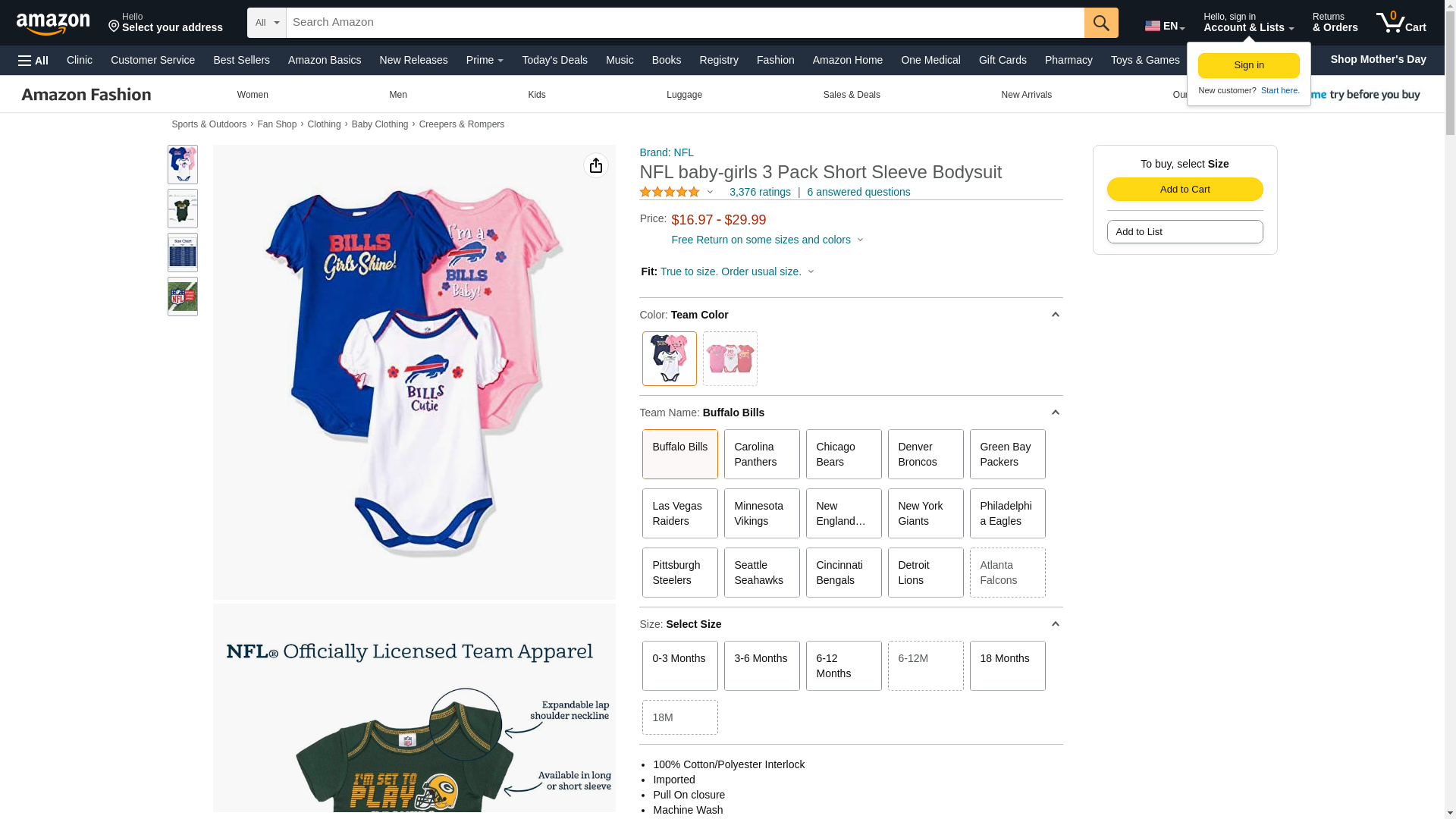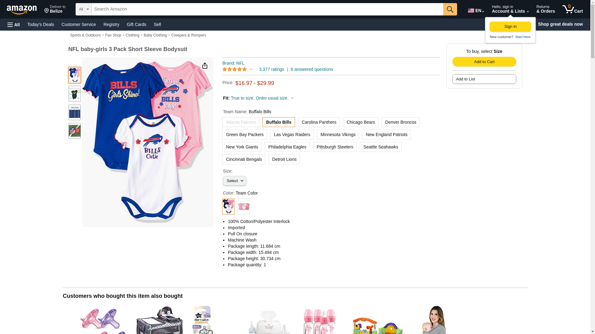 NFL Buffalo Bills Baby-Girls 3-Pack Short Sleeve Bodysuits, Fuchsia, 3-6 Months