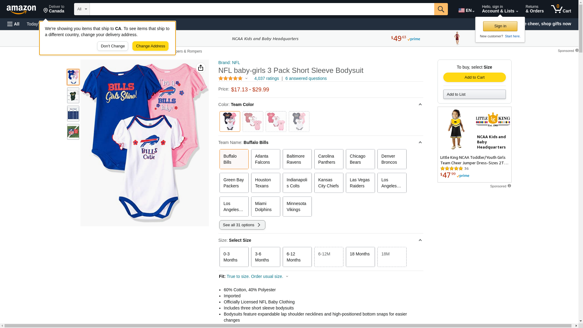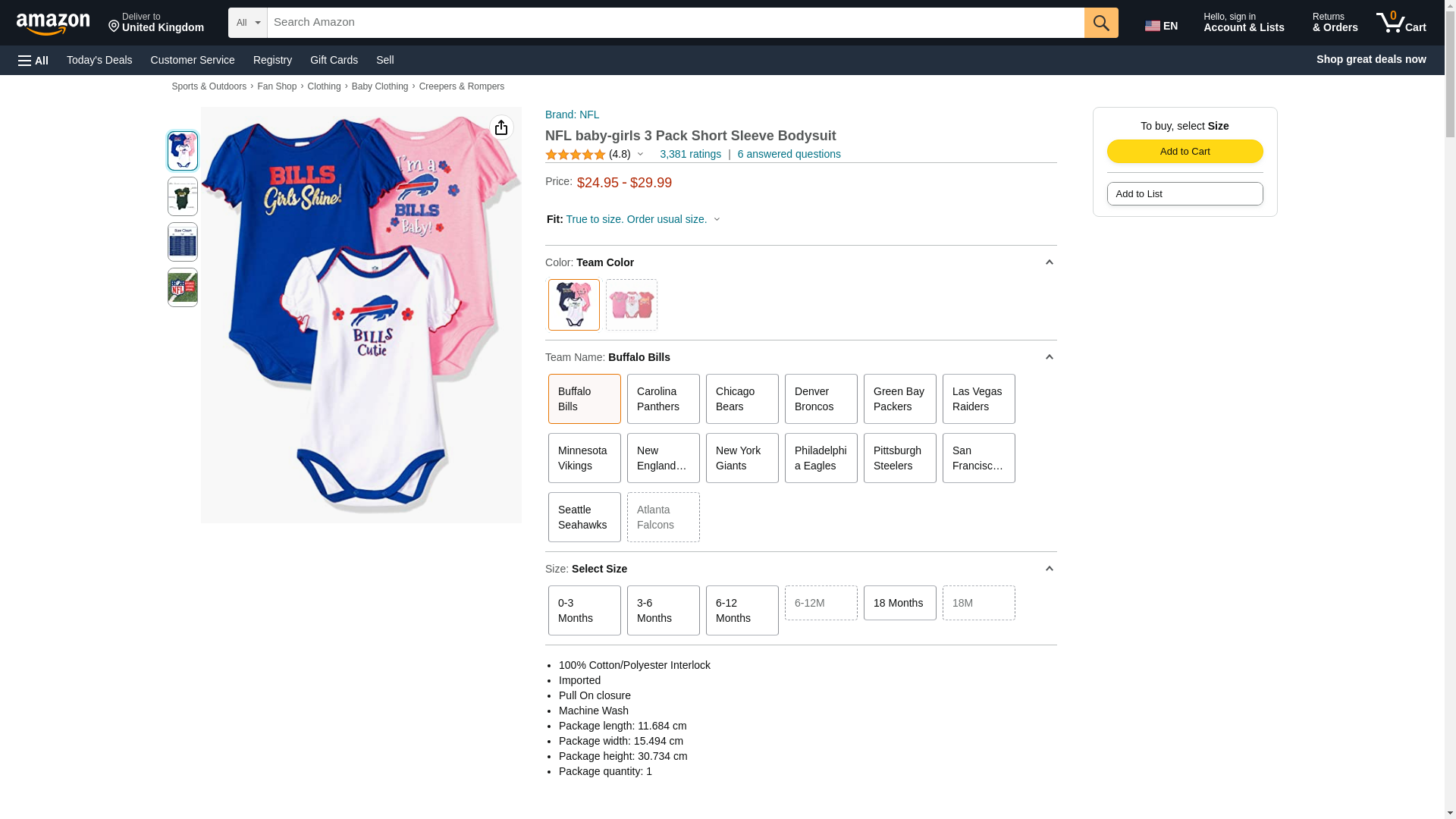NFL Buffalo Bills Baby-Girls 3-Pack Short Sleeve Bodysuits, Fuchsia, 6-12 Months