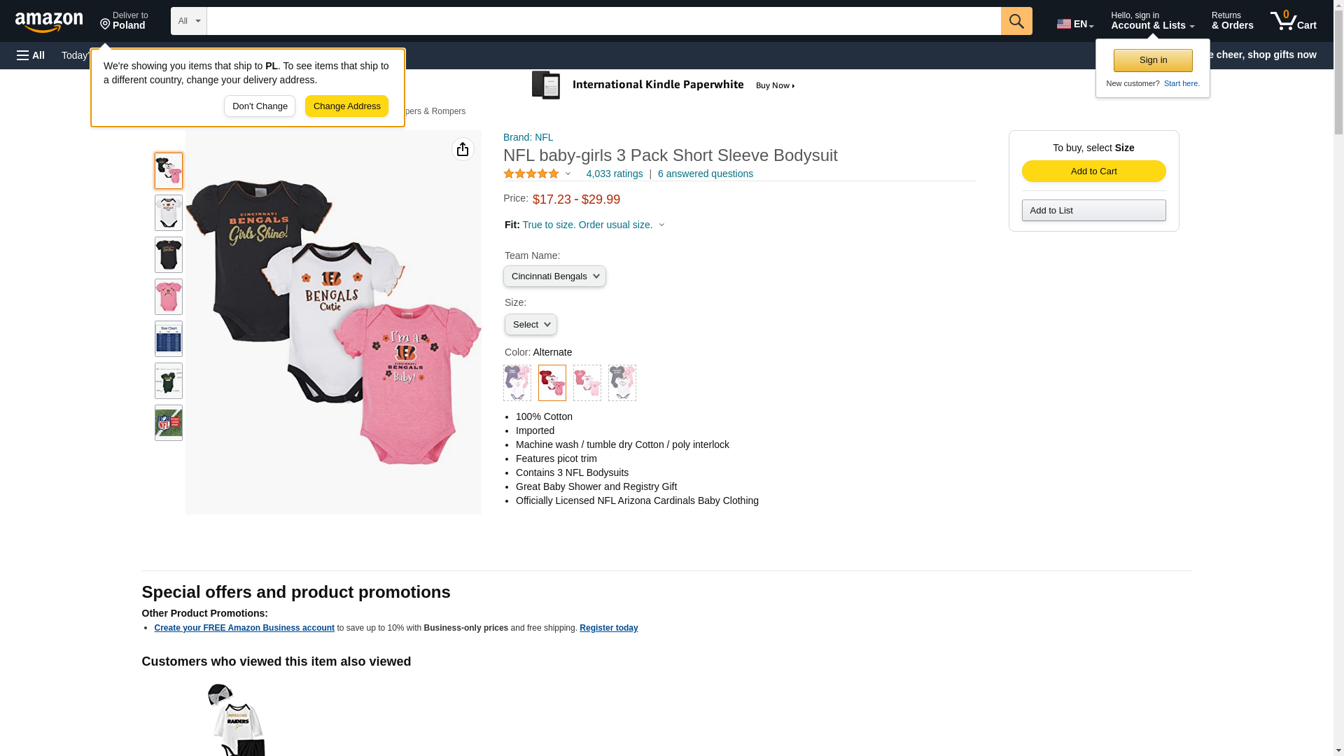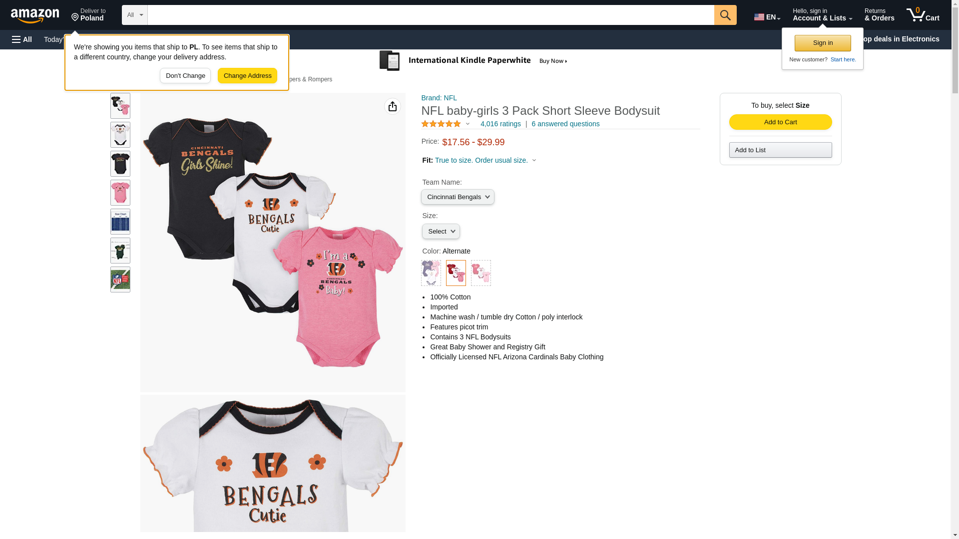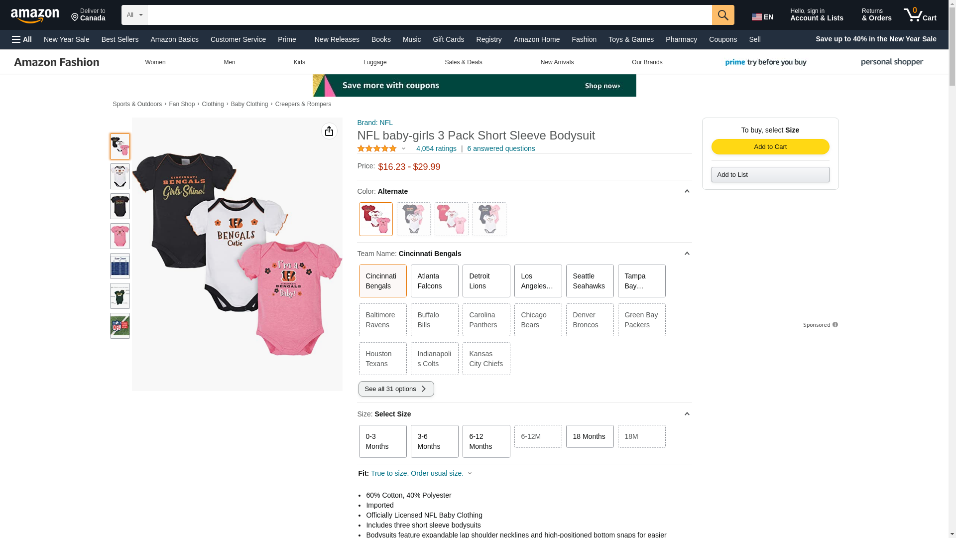 NFL Cincinnati Bengals Baby-Girls 3-Pack Short Sleeve Bodysuits, Fuchsia, 18 Months