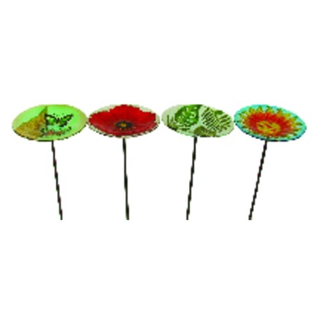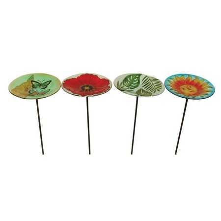 "NFINITY HOME GALLERY" GARDEN GARDEN STAKE BIRDFEEDER AND BIRDBATH *24"H stake holds 11.4" diameter stained glass bird feeder *80% glass, 20% metal *4 assorted designs