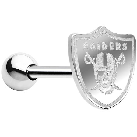 Officially licensed National Football League body jewelry. Show your team pride for the Oakland Raiders with this barbell tongue ring. This 14 gauge barbell tongue jewelry features a flat logo and is made from quality stainless steel. Specifications: 14 Gauge (1.6mm), 5/8" (16mm), 316L Stainless Steel Straight Barbell, 5mm Ball, Officially Licensed NFL Jewelry