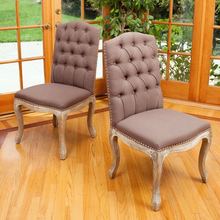<br /> <br /> <ul> <li>Includes: Two (2) chairs</li> <li>Materials: Weathered hardwood frame</li> <li>Upholstery material: 100% Polyester </li> <li>Upholstery color: mocha</li> <li> Dimensions in inches: 21.5 x 24.5 x 40</li> <li>Seat Dimensions:D 17.5 x W 21.5 X H 19.5 </li> <li>No assembly required</li> <li>Weight: 38 lbs </li> </ul>