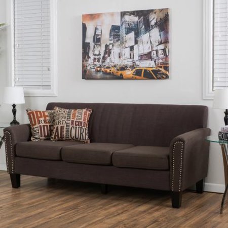 Includes: One (1) 3 Seat SofaMaterial: FabricColor: Chocholate BrownAssembly RequiredDimension: 77.20 inches wide x 31.10 inches deep x 33.10 inches highSeat Width: 66.25 inchesSeat Depth: 22.00 inchesSeat Height: 18.50 inchesArm Height: 24.75 inches