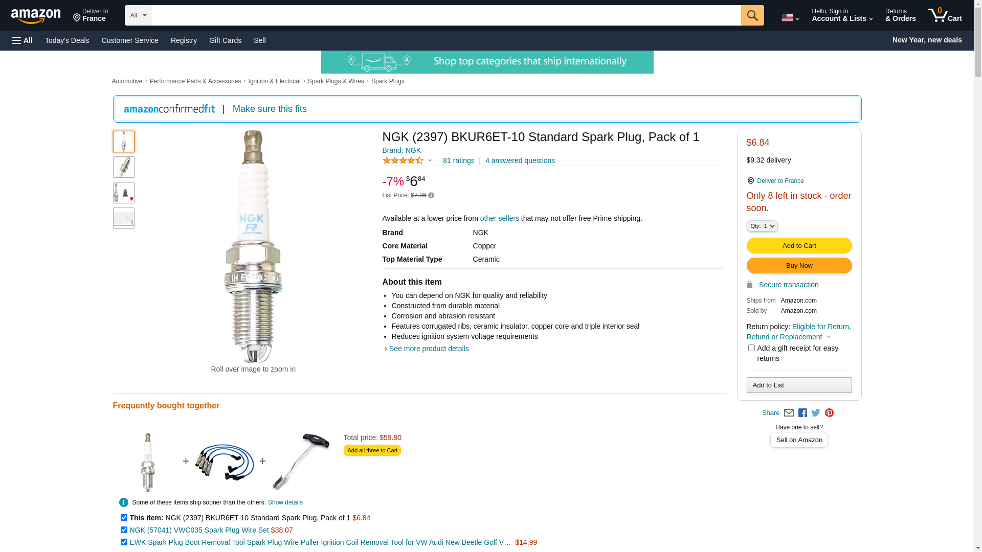 ![]() StockWise Auto | NGK-2397 | 1 | 1 | 1 @ $3.69 | |