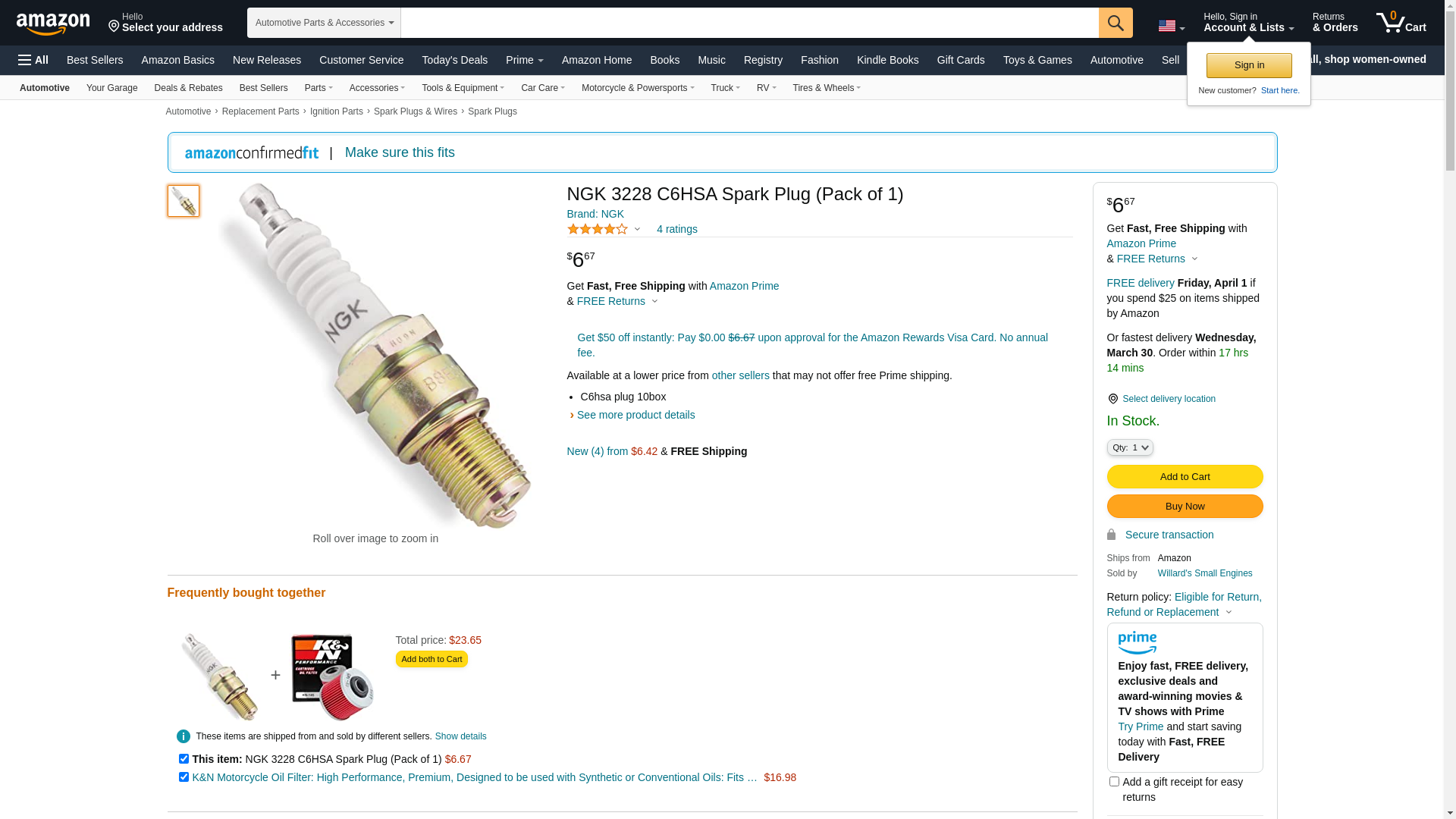 | NGK 3228 | 1 | 1 | 1 @ $11.04 | ||