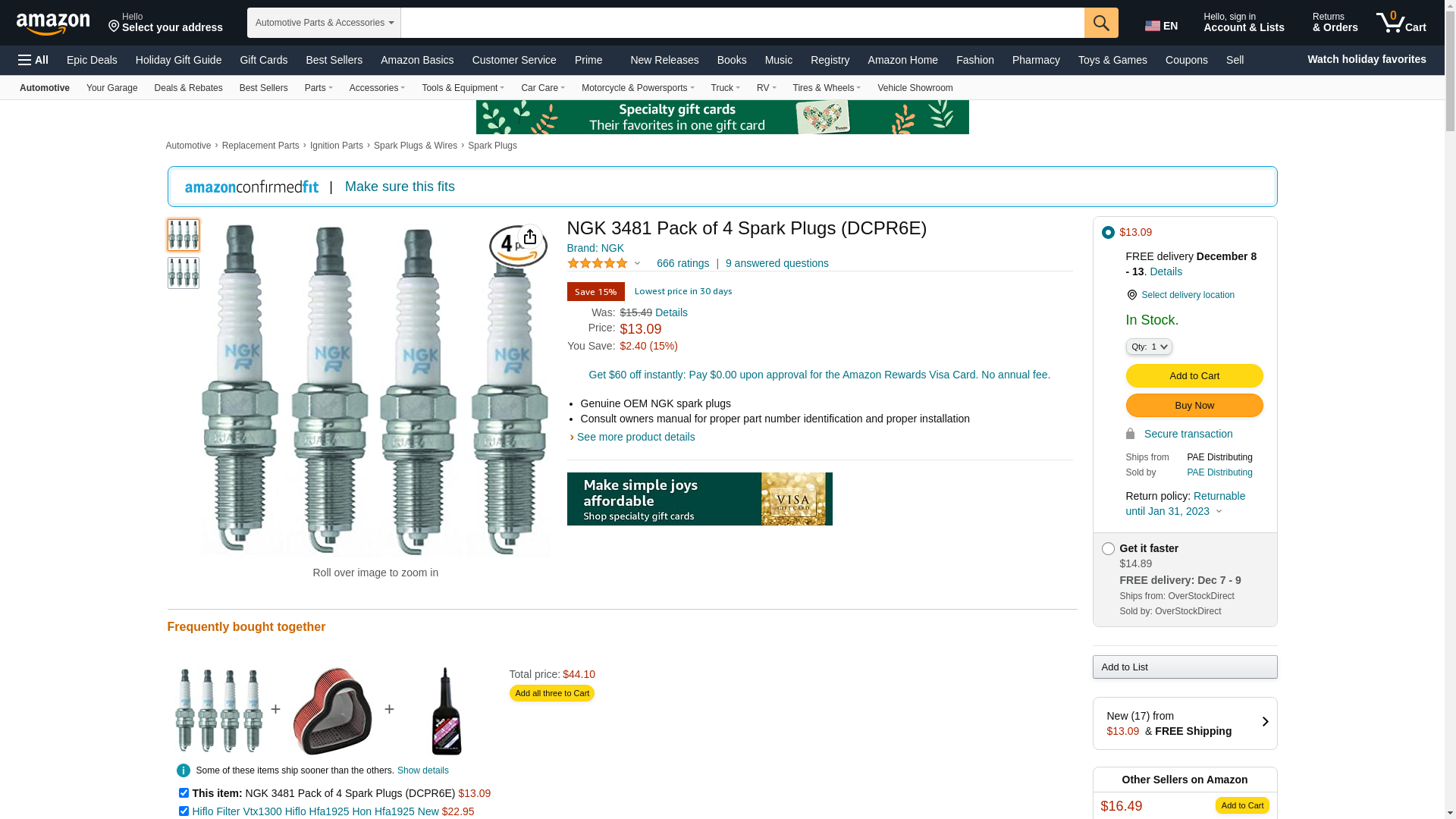 ![]() StockWise Auto | NGK-3481 | 1 | 1 | 1 @ $2.75 | |
