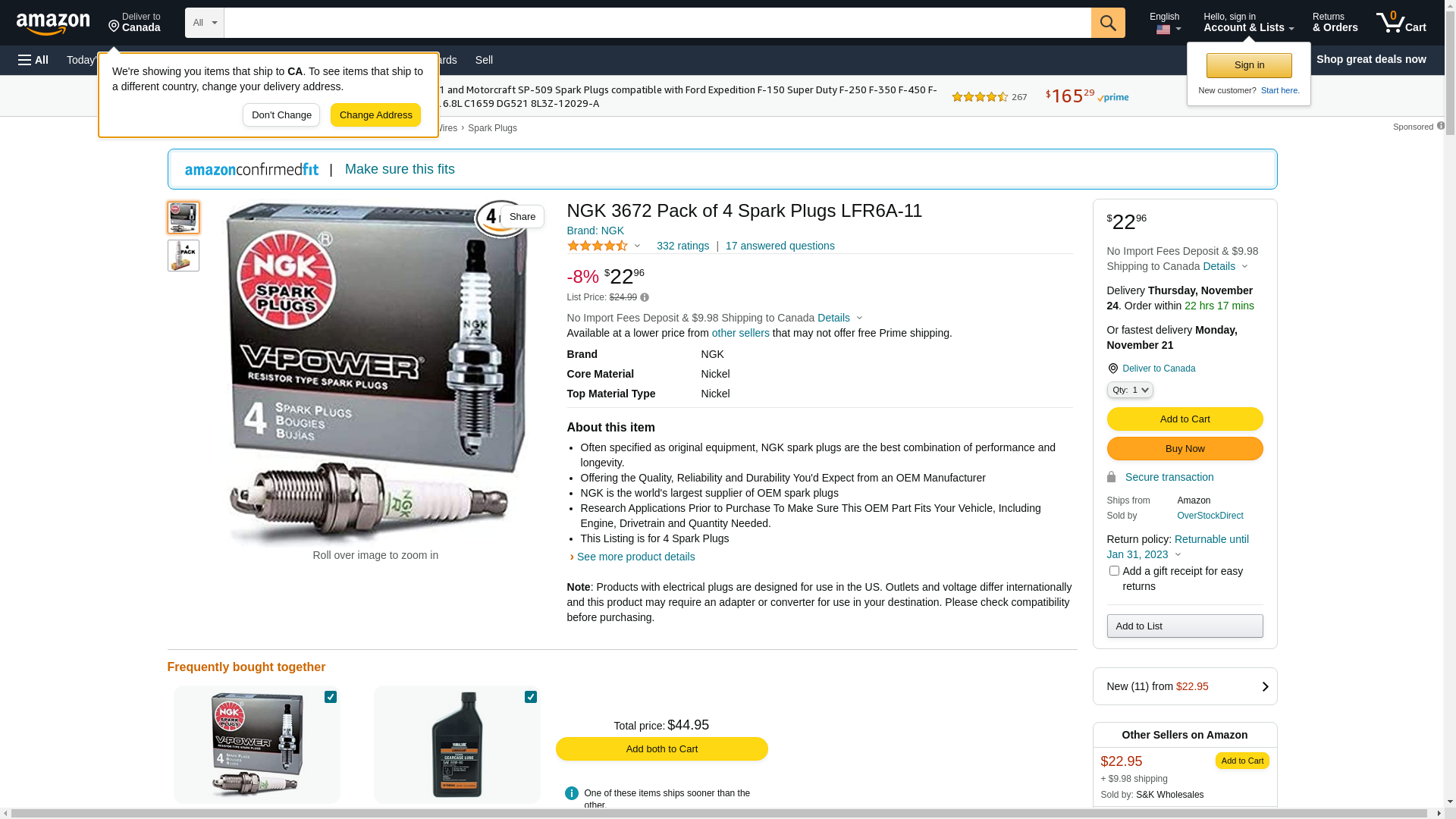 | StockWise Auto | NGK-3672 | 1 | 1 | 1 @ $4.80 | |