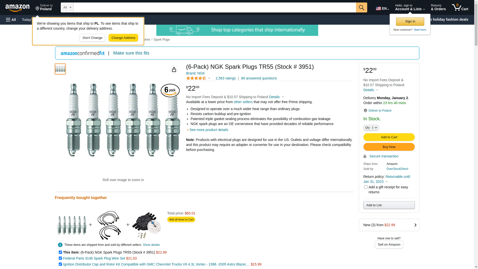 | StockWise Auto | NGK-3951 | 1 | 1 | 1 @ $2.19 | |
