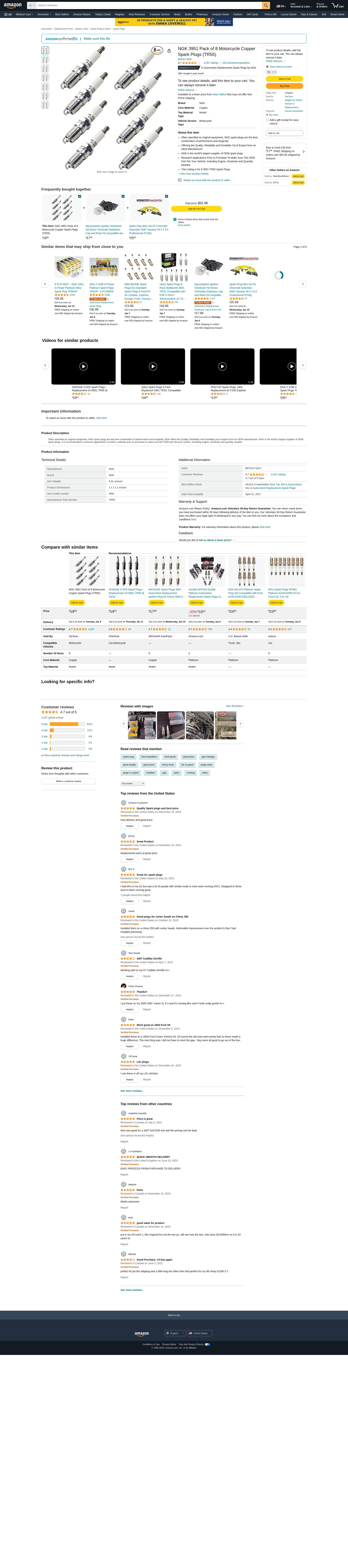NGK 3951 Pack of 8 Motorcycle Copper Spark Plugs (TR55)