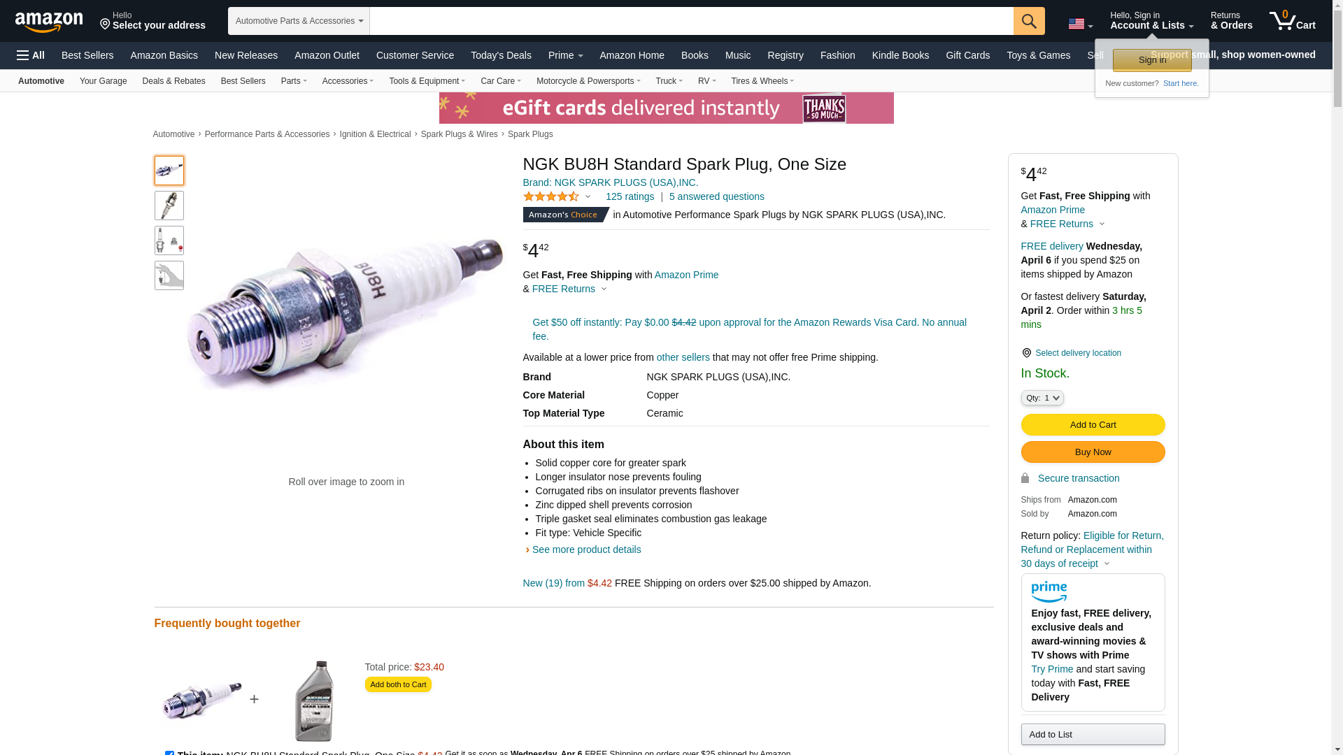 NGK BU8H Standard Spark Plug, One Size
