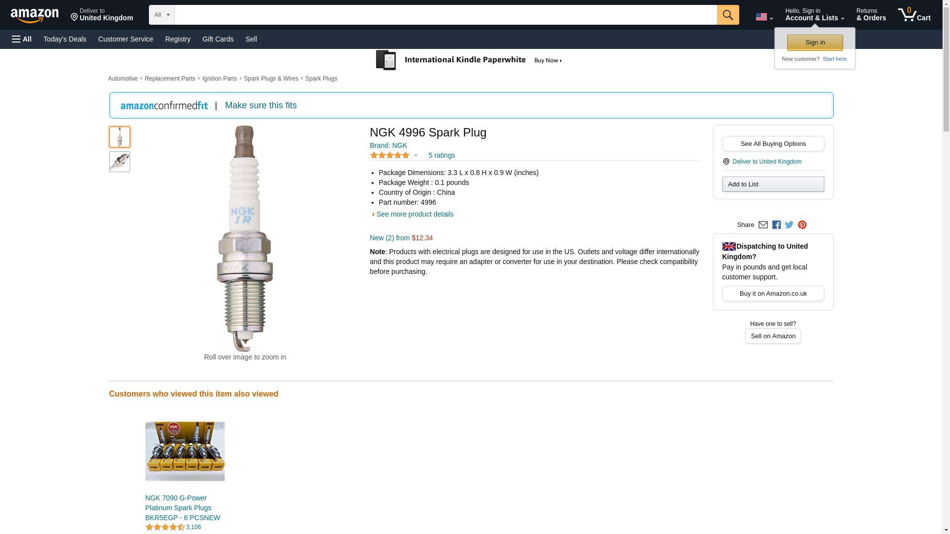 | StockWise Auto | NGK-4996 | 1 | 1 | 1 @ $6.20 | |