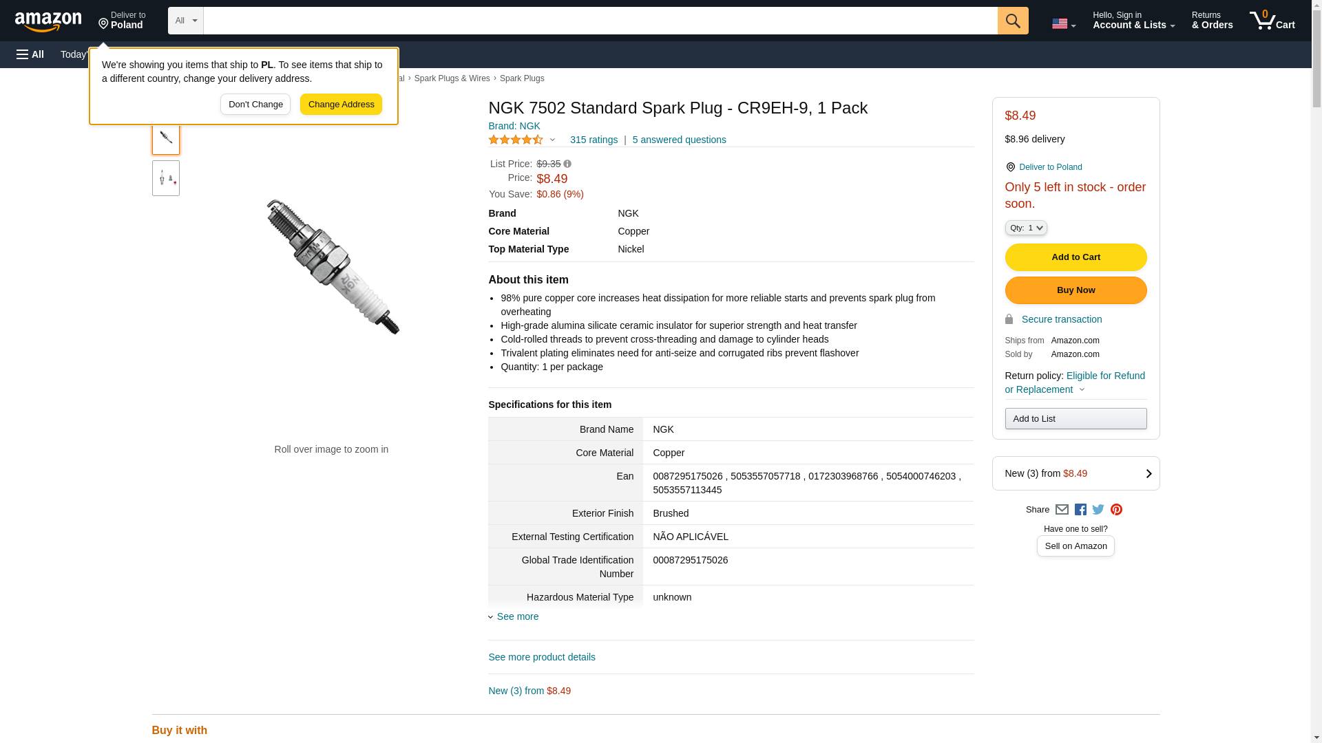 | StockWise Auto | NGK-7502 | 1 | 1 | 1 @ $5.80 | |