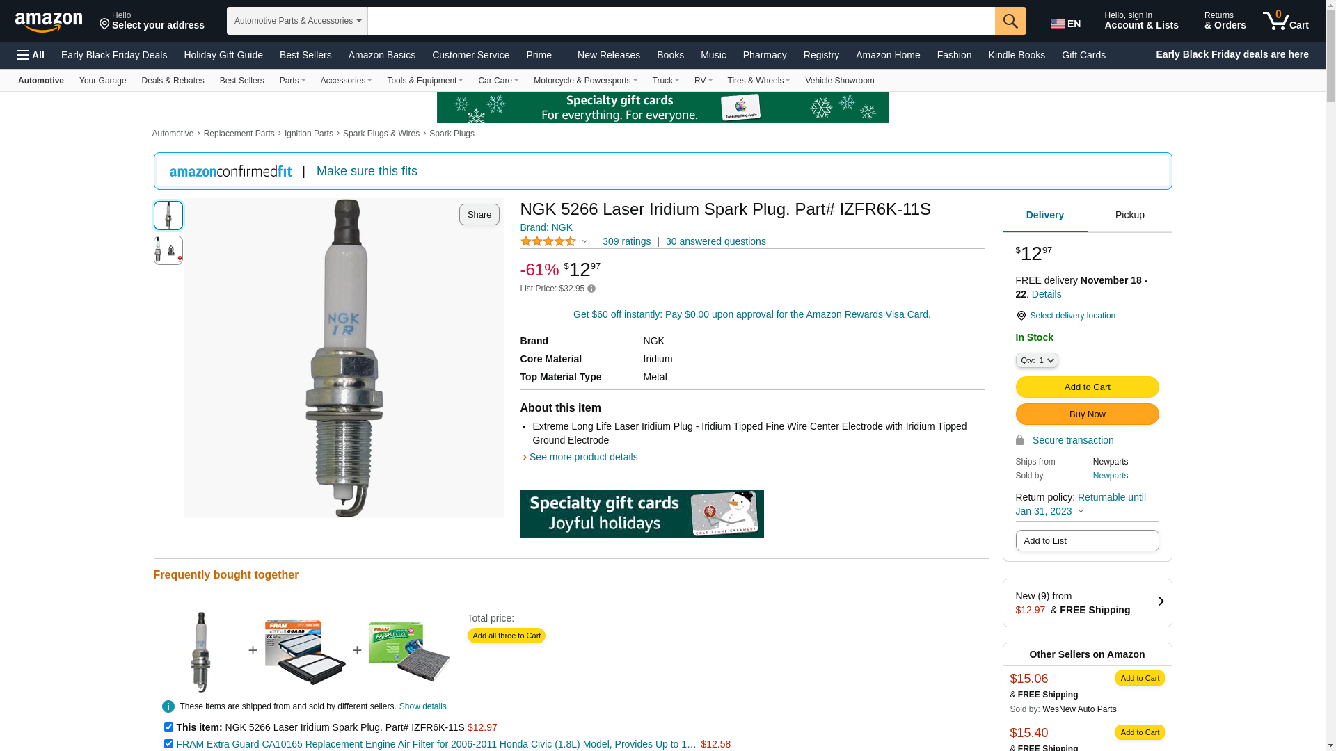 | NGK-IZFR6K-11S | 1 | 2 | 1 | 1 @ $50.04 | |