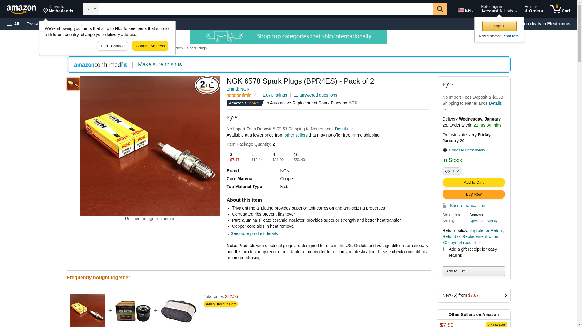 | StockWise Auto | NGK-6578 | 1 | 1 | 1 @ $2.30 | |