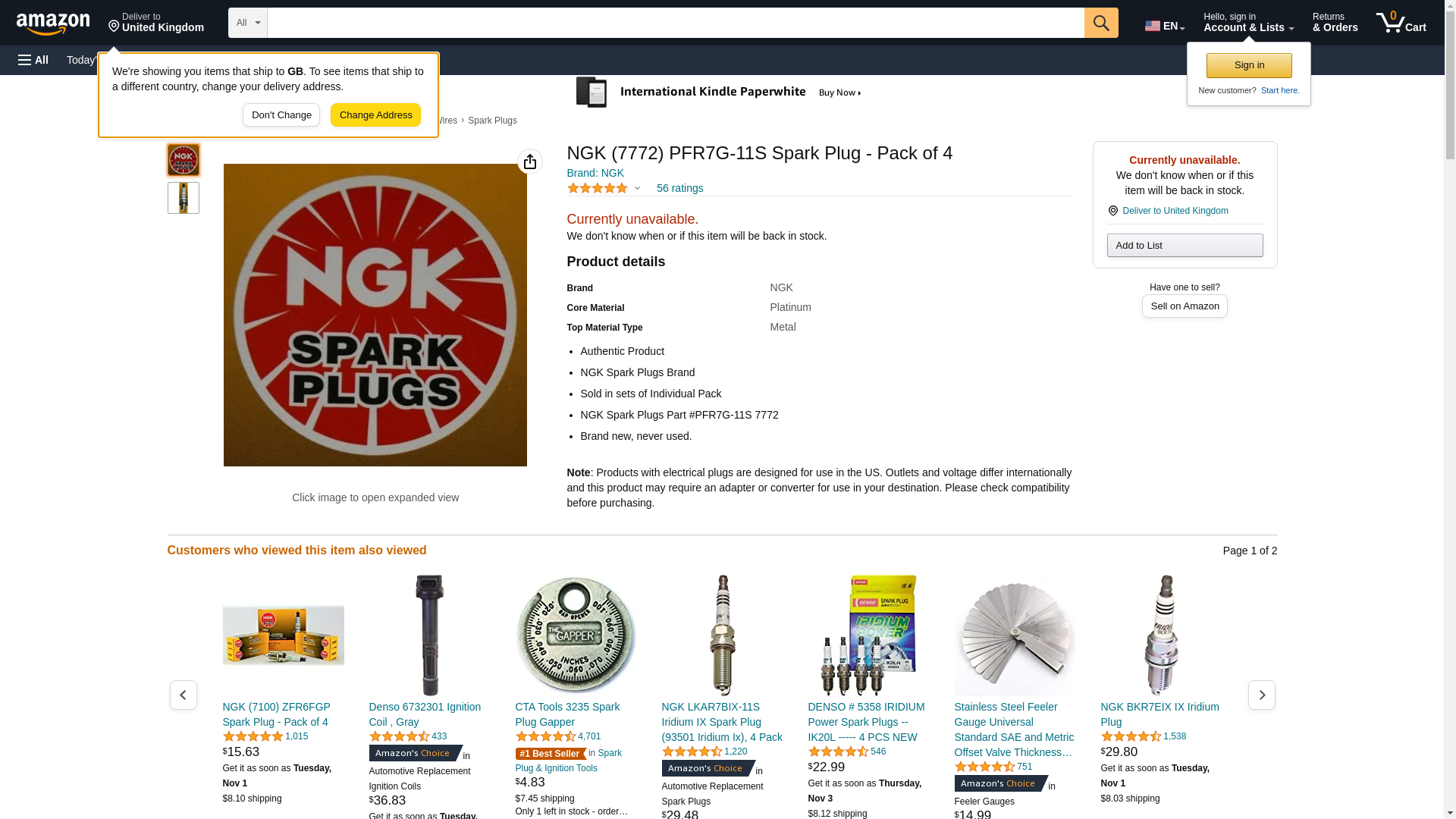 Brand new, Genuine NGK Spark Plugs MPN PFR7G-11S 7772.