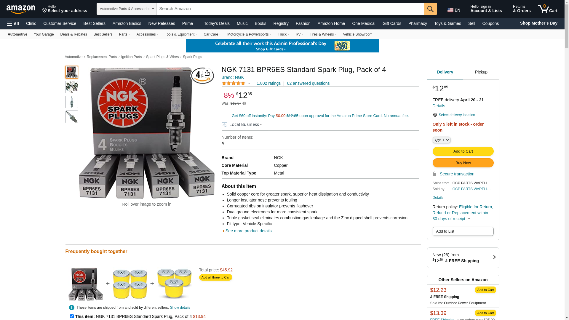 - NGK Spark Plugs Spark Plugs 7131, Box of 4.