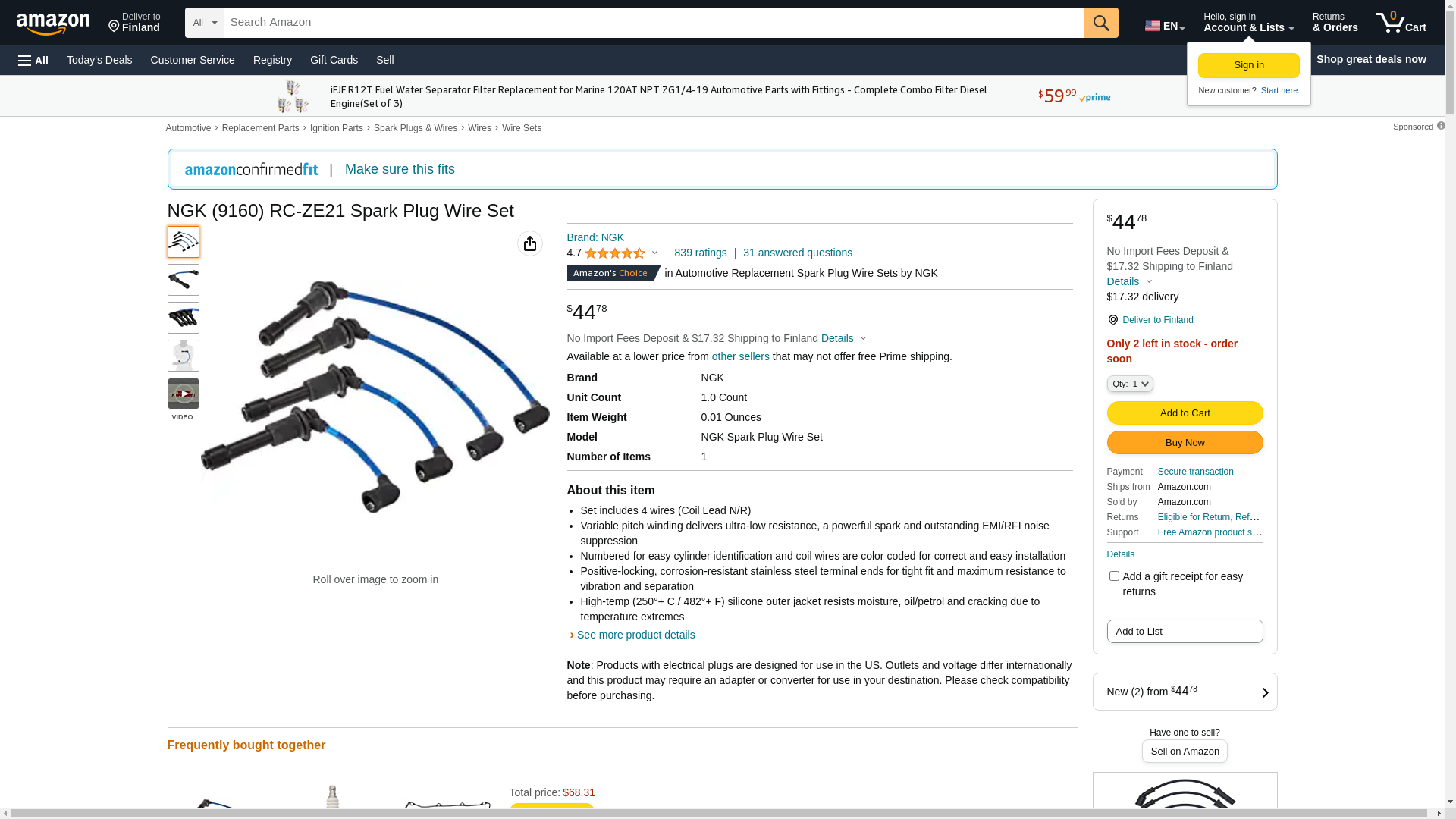 ![]() StockWise Auto | NGK-9160 | 1 | 1 | 1 @ $27.44 | |