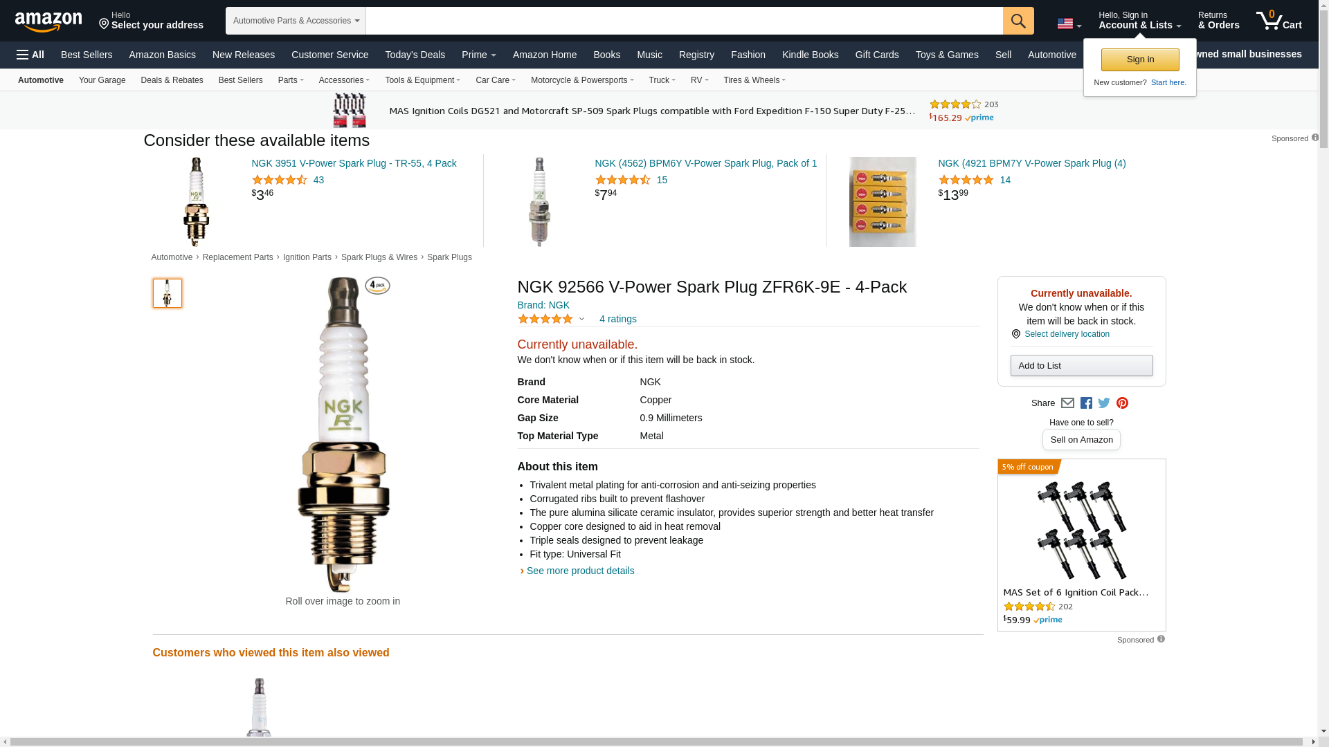 ![]() maperformance.com | NGK 92566 | 1 | 1 | 1 @ $21.01 | |