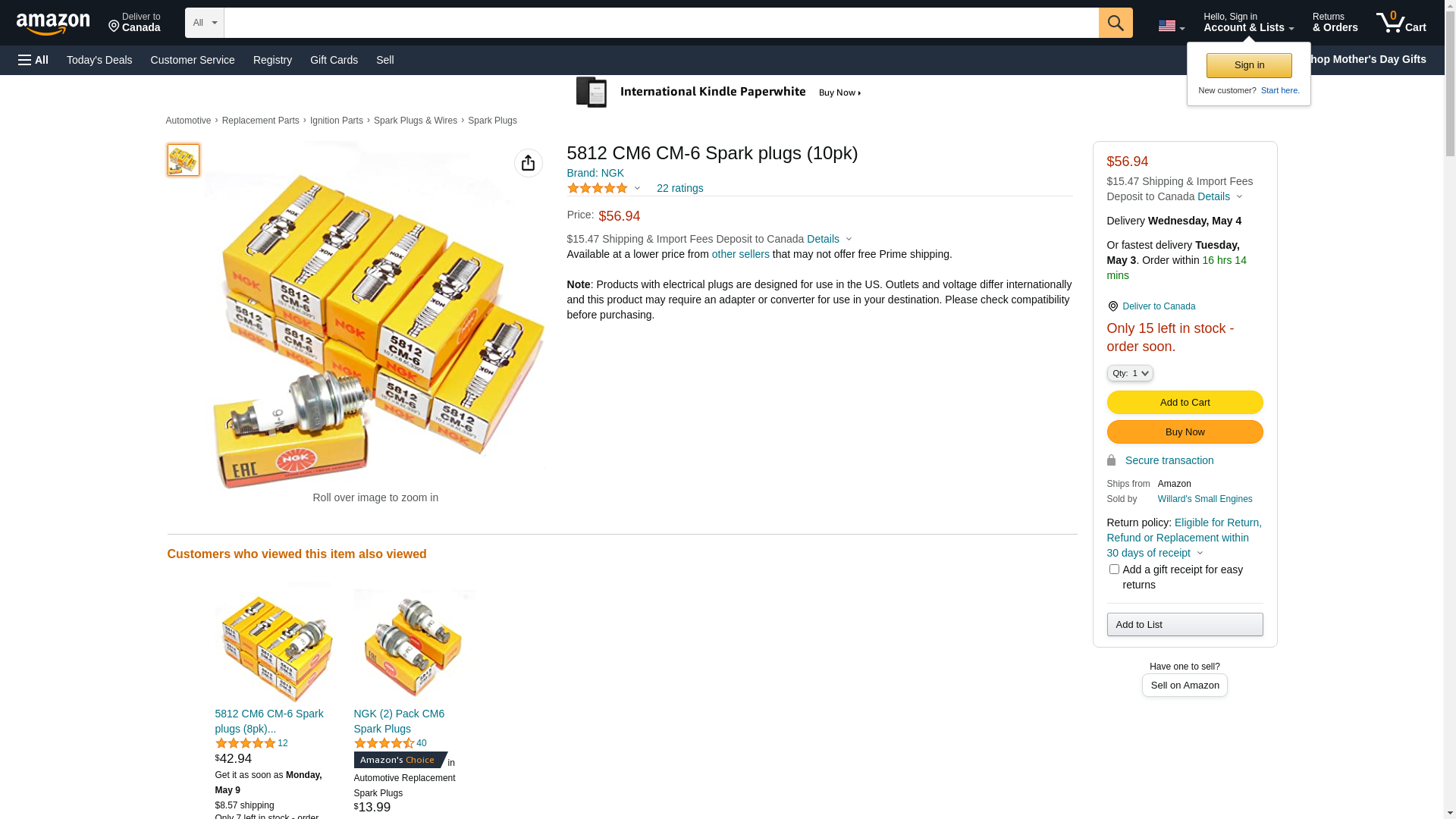 | NGK5812 | 1 | 1 | 1 @ $9.66 | ||