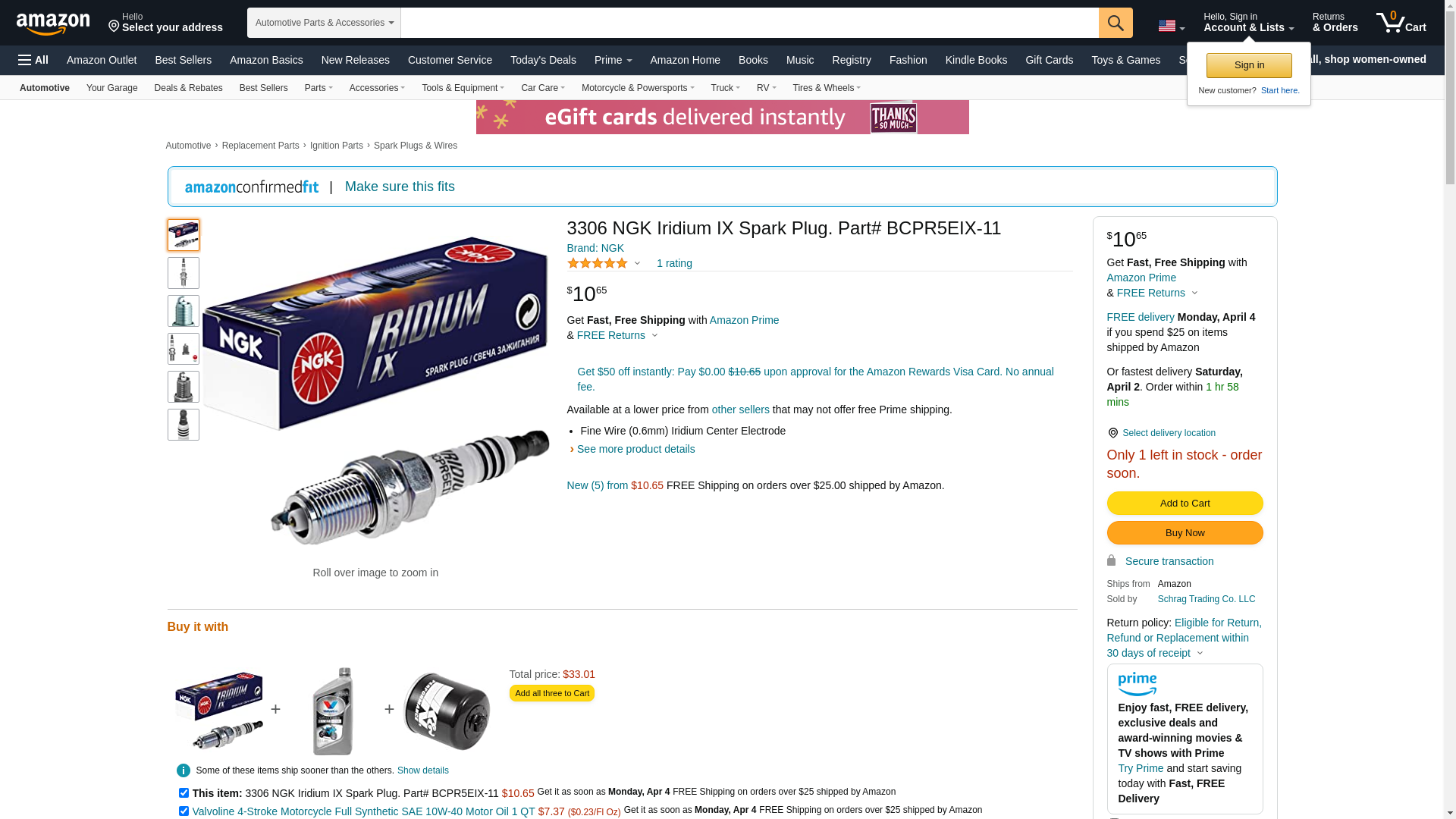 NGK (3306) BCPR5EIX-11 Iridium IX Spark Plug, Pack of 1