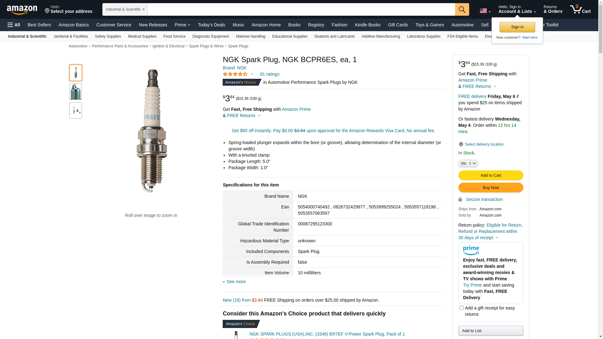 | StockWise Auto | NGK-BCPR6ES | 1 | 1 | 1 @ $2.30 | |