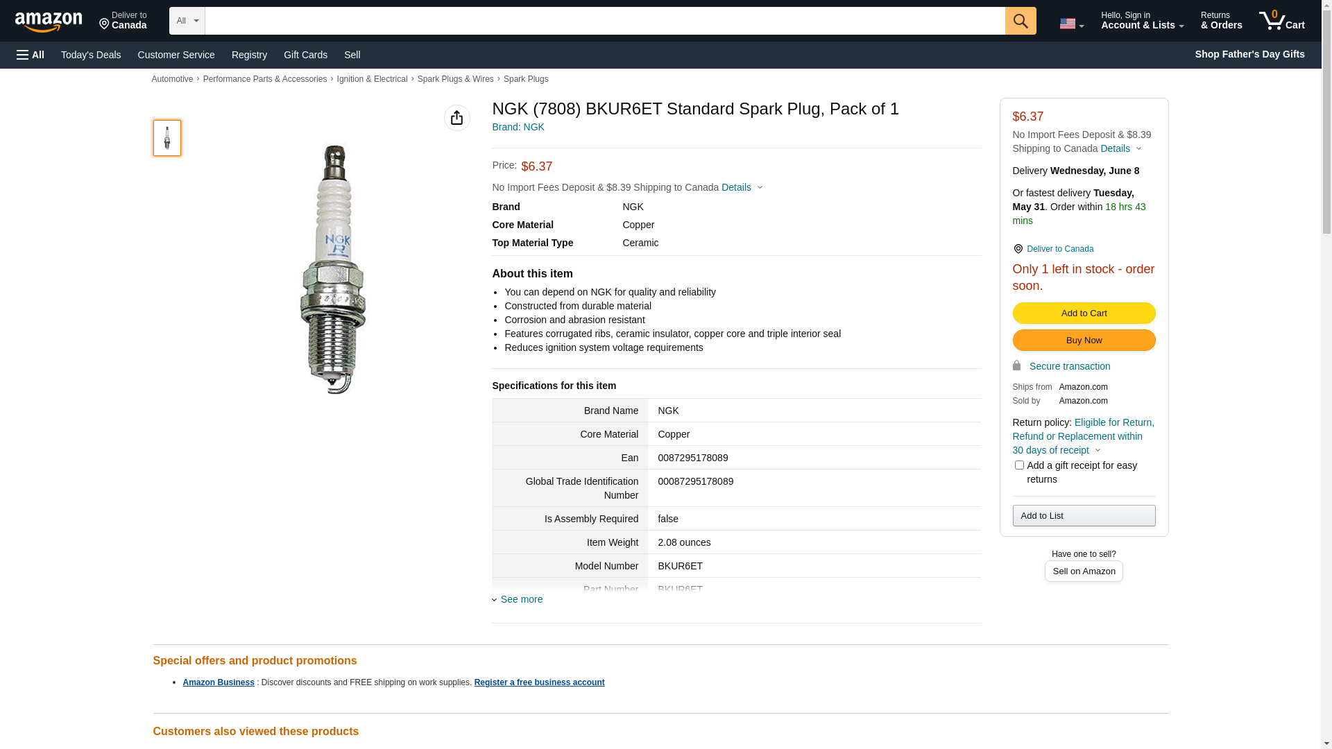 ![]() Pit Stop USA | NGKBKUR6ET | 1 | 1 |