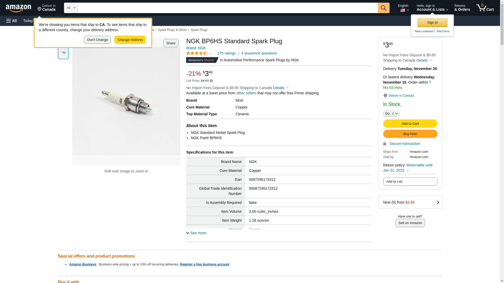 | Feature | Ngk bp6hs spark plug |