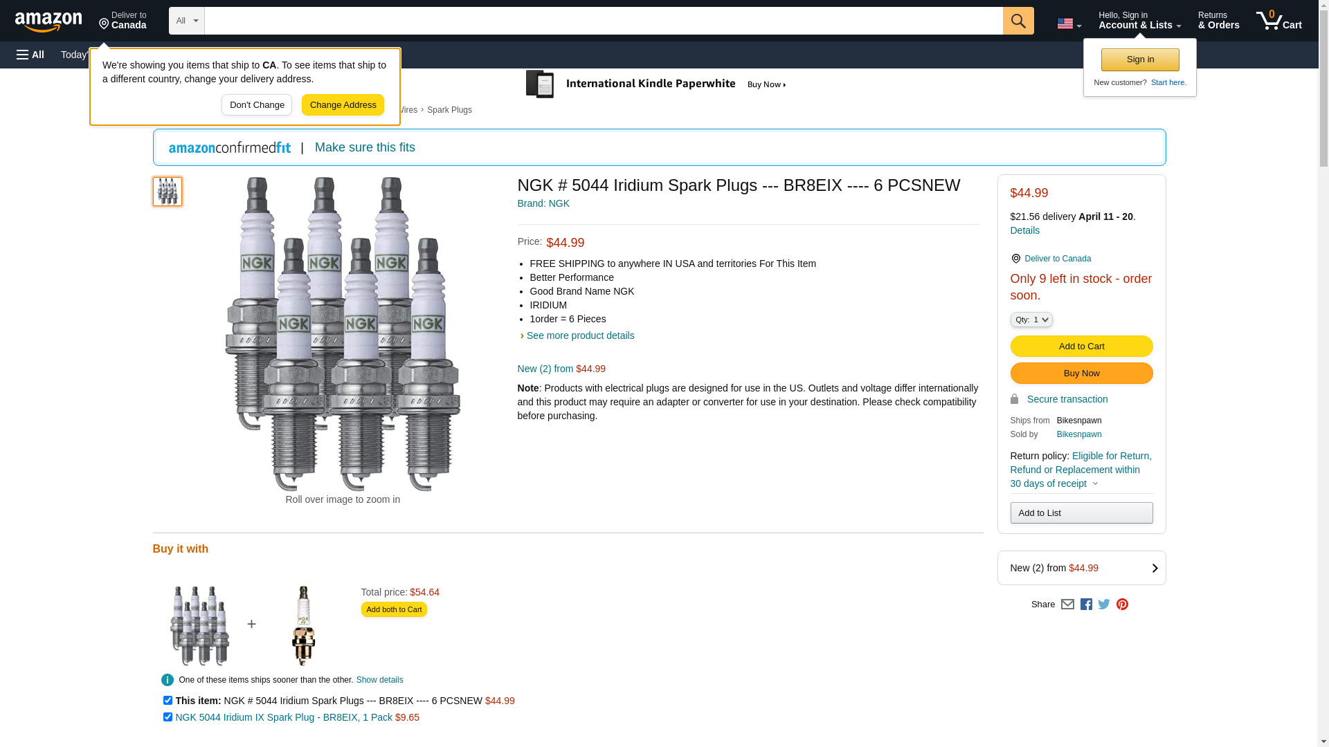 | NGK-BR8EIX | 1 | 1 | 1 @ $13.82 | ||