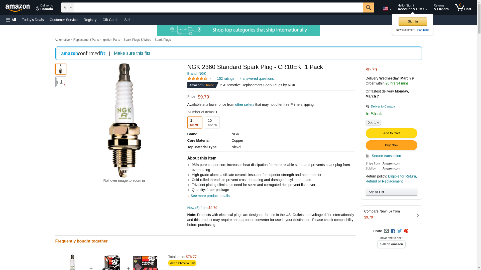 | NGKCR10EK | 1 | -2 | 1 | 1 @ $8.99 |
