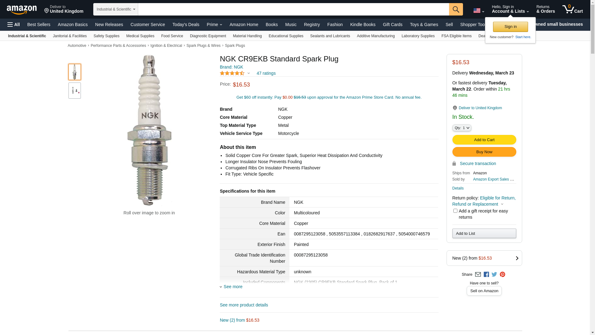 ![]() Pit Stop USA | NGKCR9EKB | 1 | 1 | 1 @ $8.97 | |