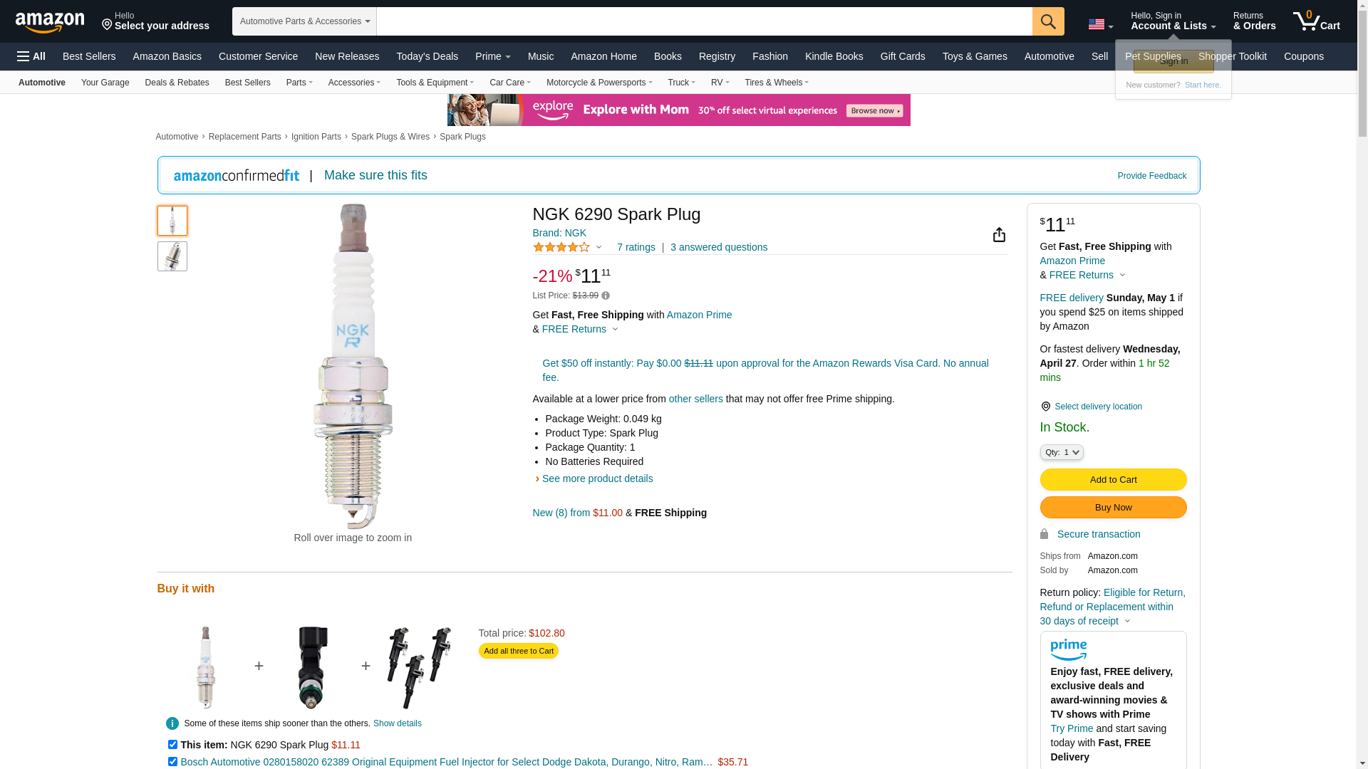| StockWise Auto | NGK-6290 | 1 | 1 | 1 @ $9.51 | |