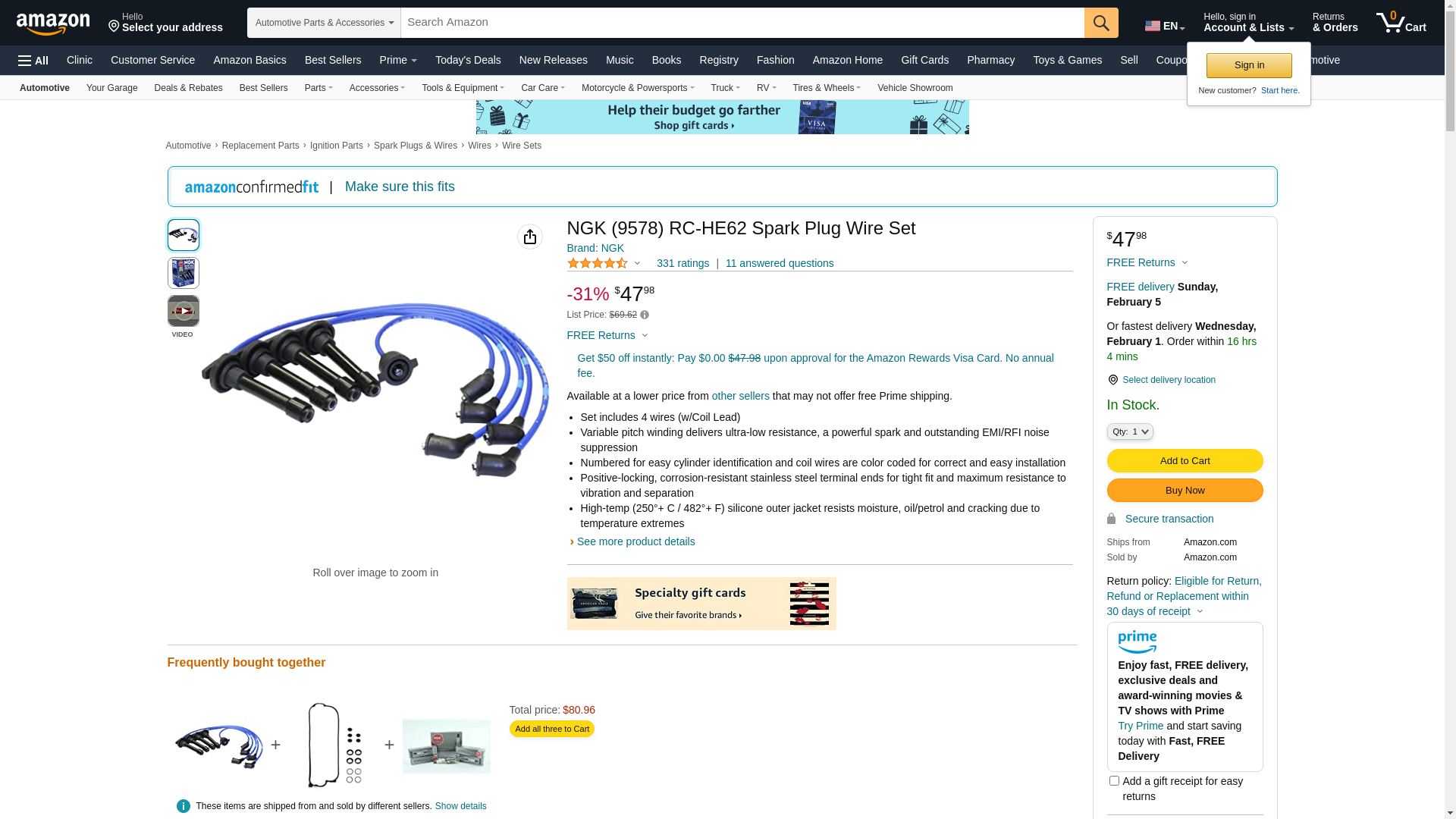 ![]() StockWise Auto | NGK-9578 | 1 | 1 | 1 @ $28.12 | |
