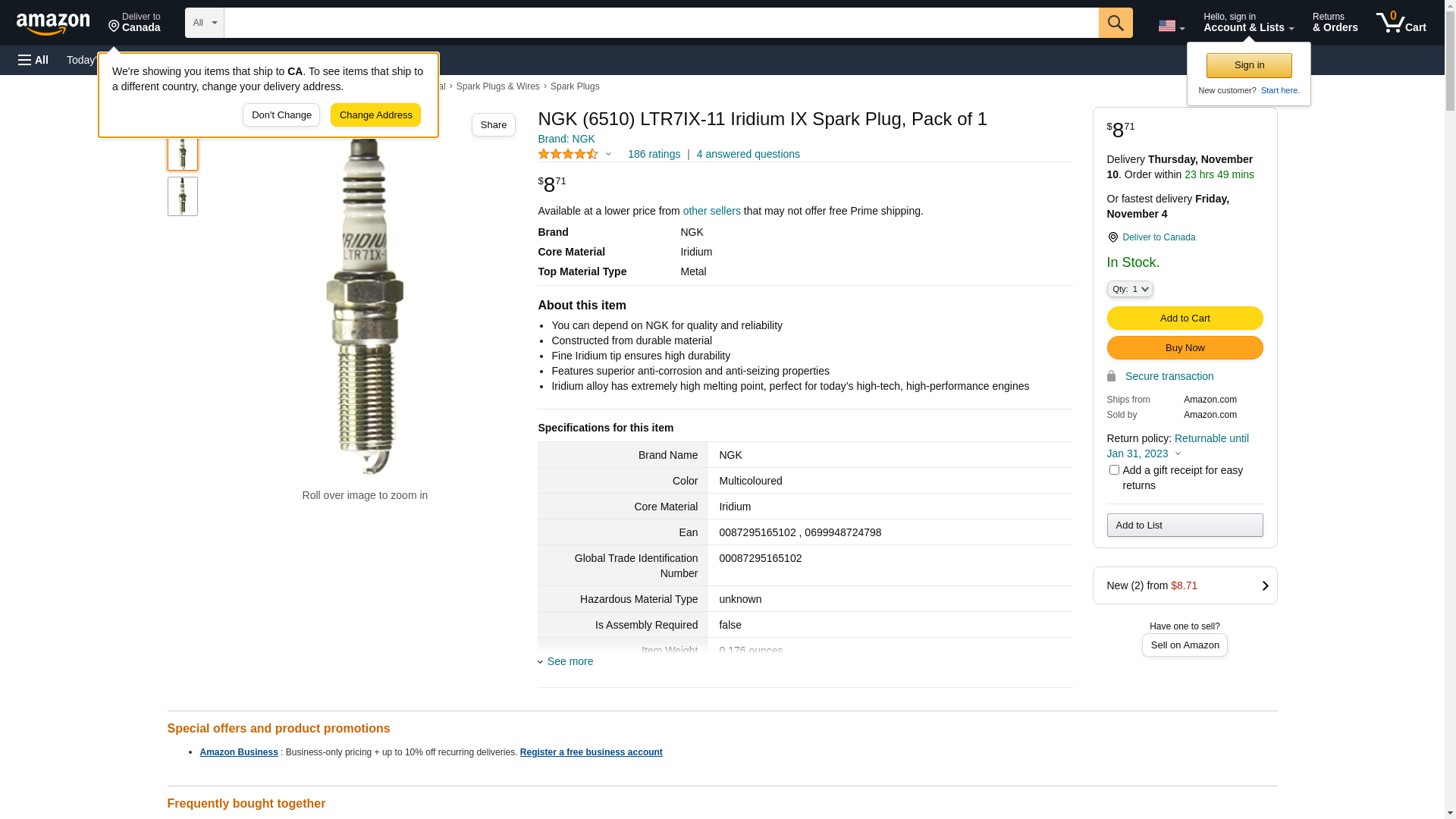 | NGK LTR7IX-11 | 1 | 8 | 1 | 1 @ $7.80 |