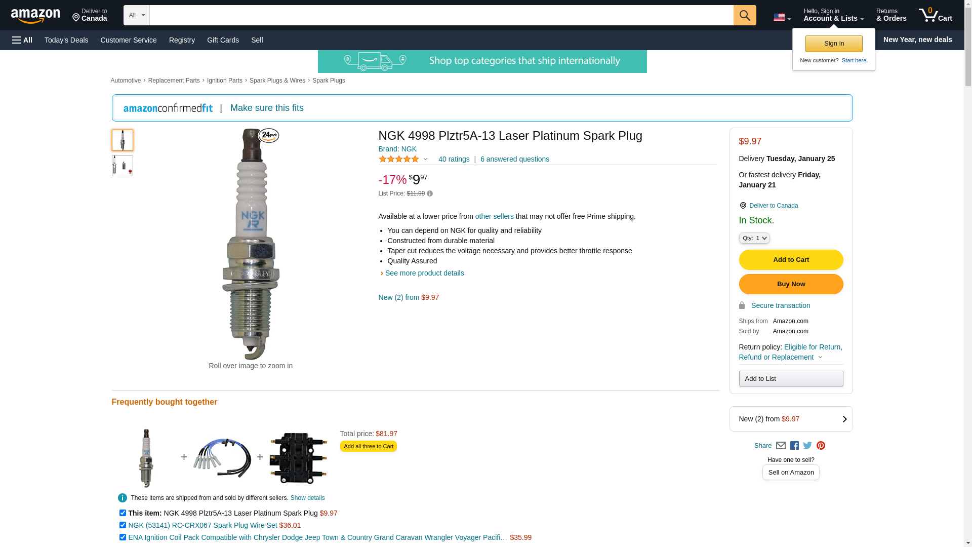 NGK 4998 Plztr5A-13 Laser Platinum Spark Plug