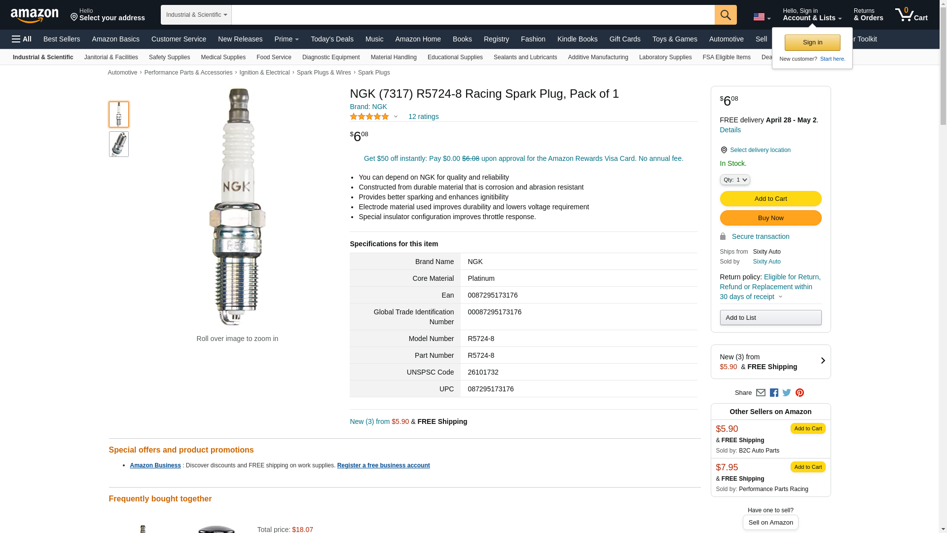NGK (7317) R5724-8 Racing Spark Plug, Pack of 1