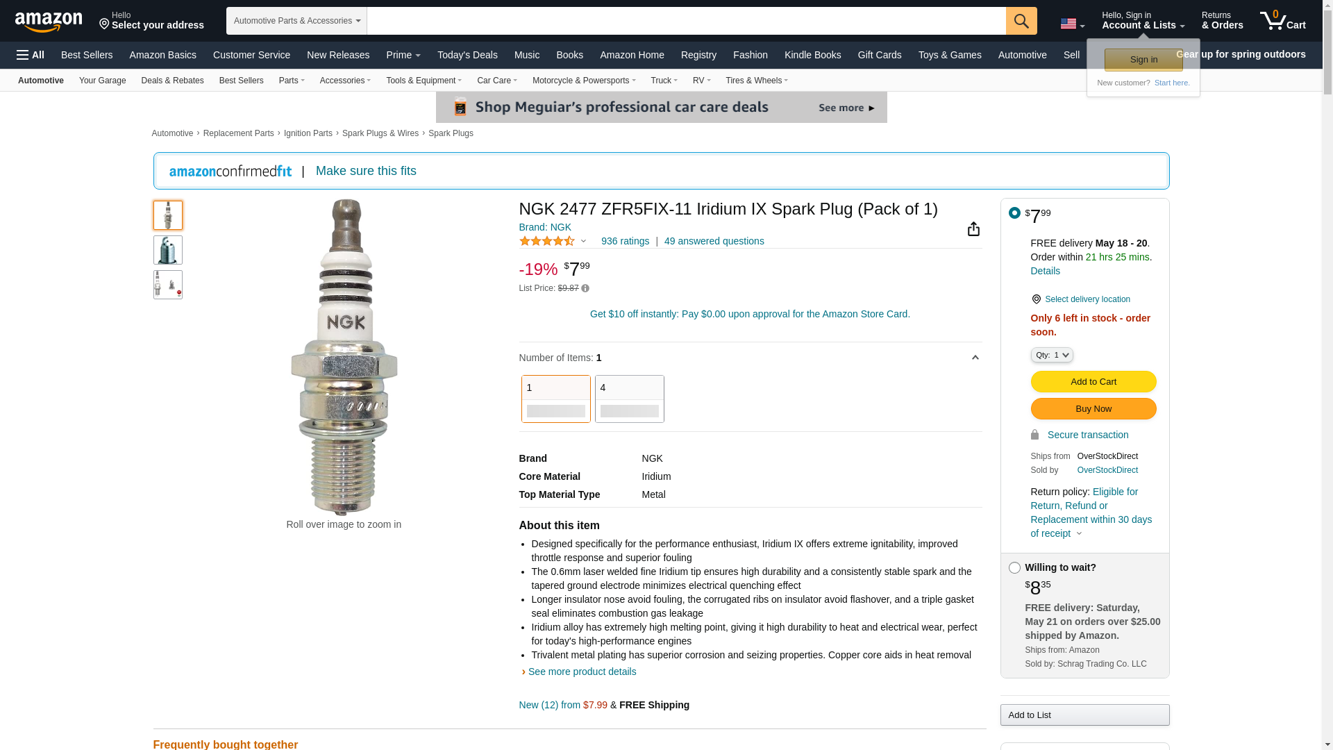 ![]() Pit Stop USA | NGKZFR5FIX-11 | 1 | 1 | ||