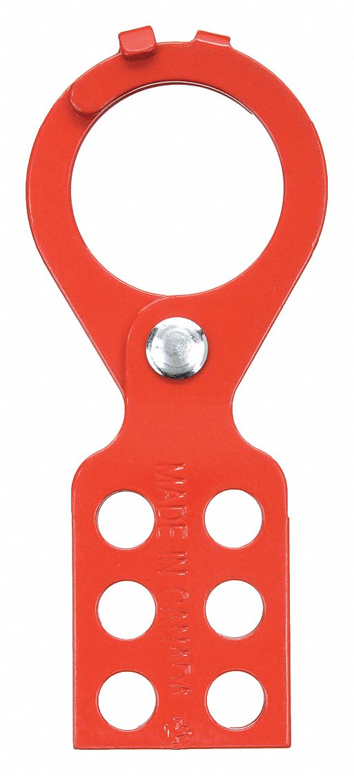 - Price For: Each Item: Lockout Hasp Max. Number of Padlocks: 6 Hasp Style: Standard Standards: 29 CFR 1910.147 Closed Hasp Hole Size: 1-1/2" Padlock Shackle Max. Dia.: 3/8" Width: 2-1/10" Material: Steel/Spark-Resistant Length: 4" Color: Red Country of Origin (subject to change): Canada