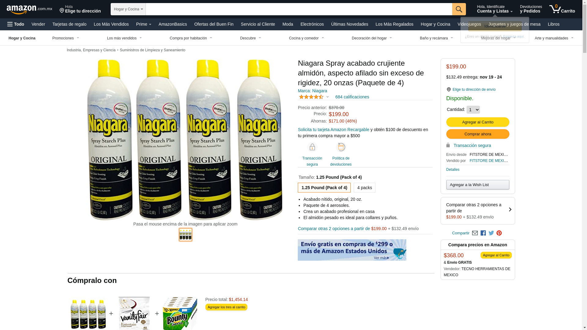 Niagara original, spray starch, crisp finish; sharp look, without excess stiffness 20-oz (4-Pack)